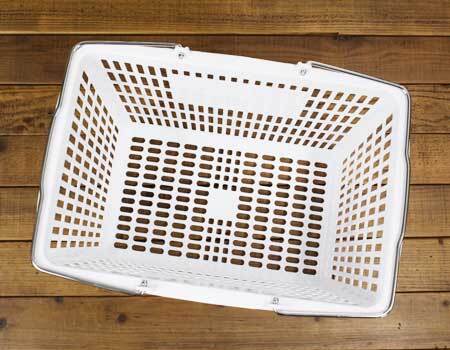 スーパーマーケットなどで使われる買い物カゴがベースの収納カゴです。