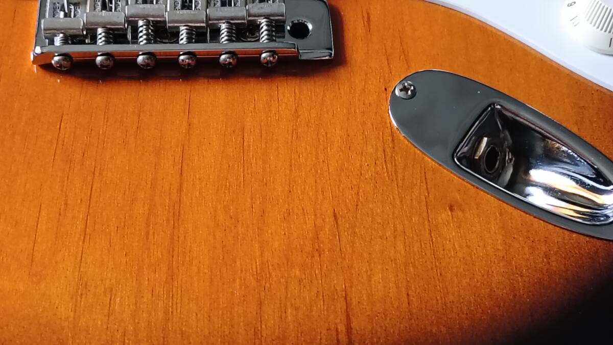 レギュラーモデルのST57-USはバスウッドボディですが、この個体は上位モデルのST57-TXと同様のアルダーボディのようです。