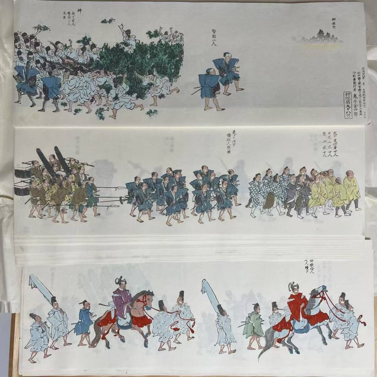 東照宮千人武者行列 鬼平金四郎作 初版第九十八号 21枚 明治28年印刷 江戸時代日光版画 浮世絵 木版画