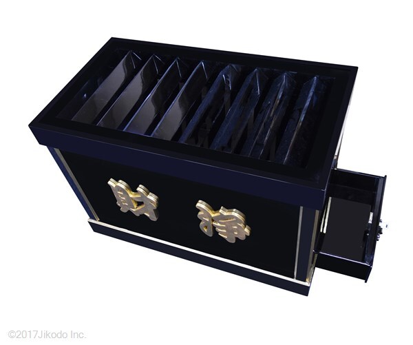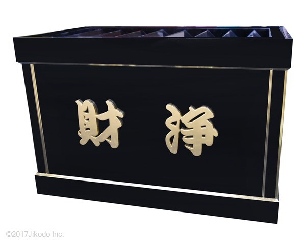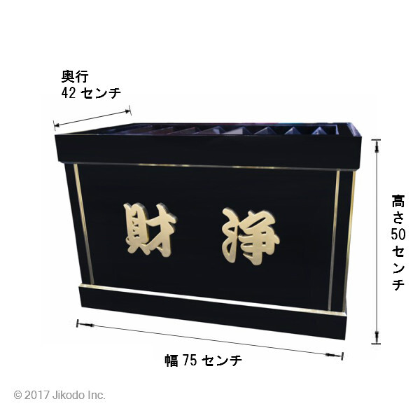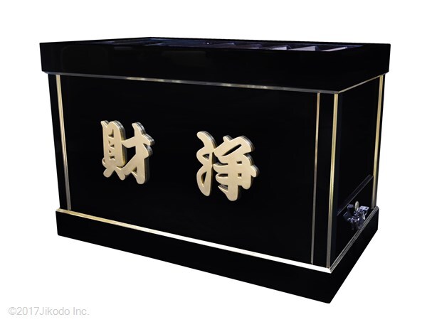 【寺院仏具】黒塗り オリジナル賽銭箱 幅75cm 国内自社工場制作 木製高級寺院仏具通販(受注生産品)(商品番号20006k)