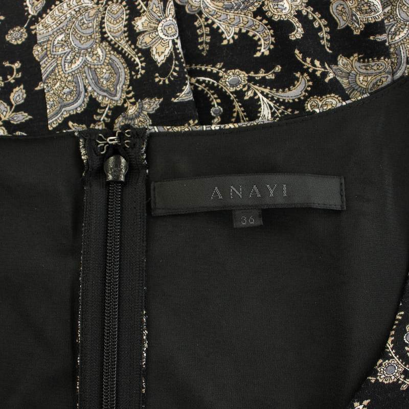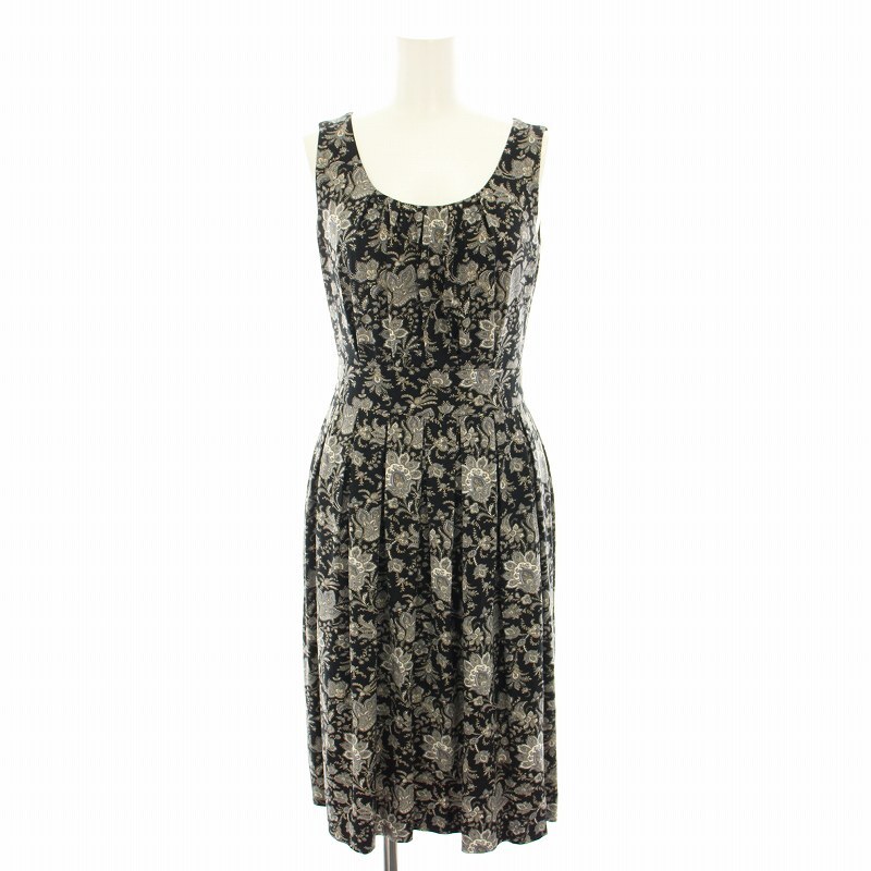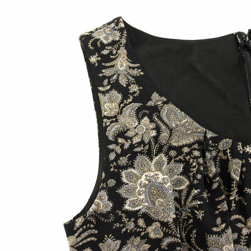 アナイ ANAYI ワンピース ひざ丈 ノースリーブ ペイズリー柄 36 黒 ブラック グレー 15829-13 /YT レディース