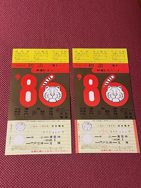 昭和61年 初詣 三福まいり 開運記念カード 2枚 (管理番号30-21)