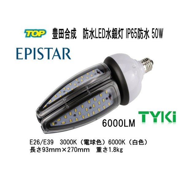 360度発光 EPISTAR  IP65防水 LED水銀灯 コーン型 50W E39 6000LM 屋内・屋外・倉庫・ガソリンスタンド・体育館