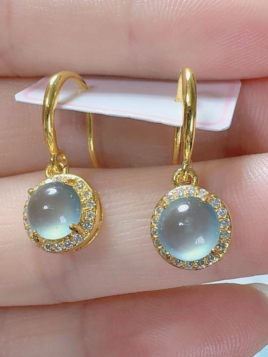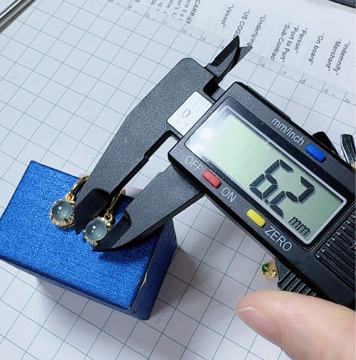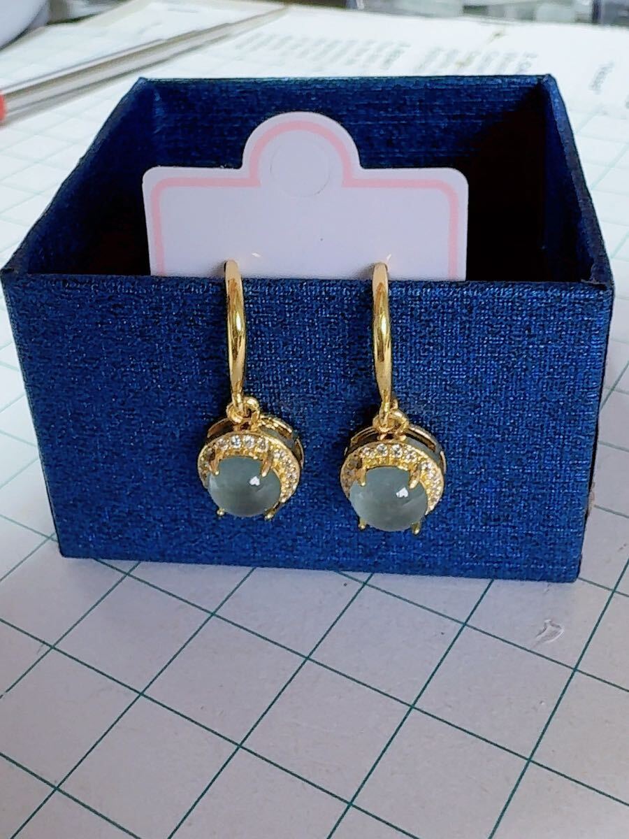 R2M-0198-1天然本翡翠《本物保証》 藍水翡翠ピアス6.2mm/8.6mm 一点物 魔除け 昇進 成功 風水 金運 財運 幸運 幸福 縁起物 パワーストーン 画像通りケース付き