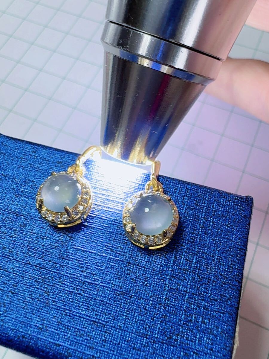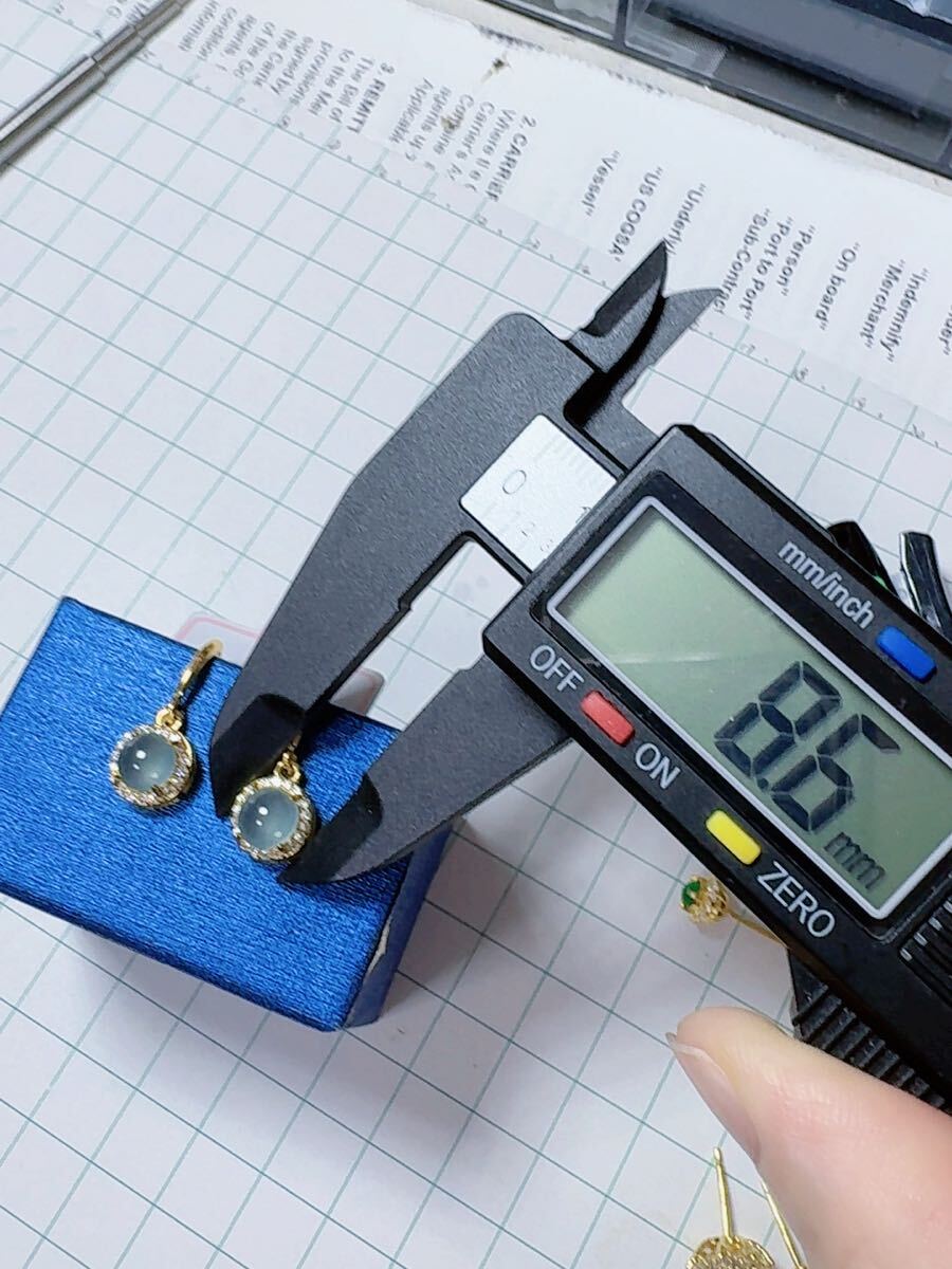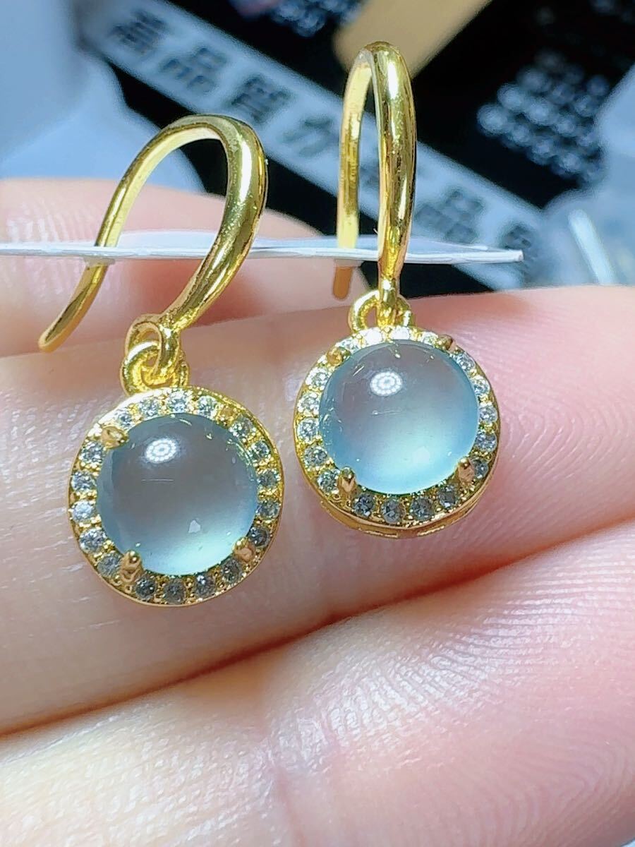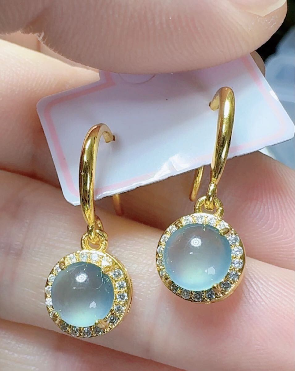 R2M-0198-1天然本翡翠《本物保証》 藍水翡翠ピアス6.2mm/8.6mm 一点物 魔除け 昇進 成功 風水 金運 財運 幸運 幸福 縁起物 パワーストーン 画像通りケース付き