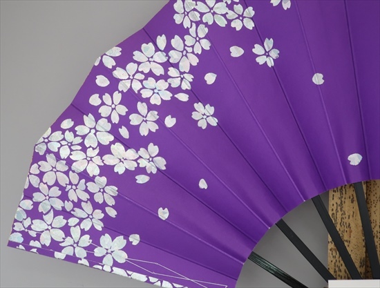 舞扇子 A2004 ホロ箔桜両妻 紫地 【箱なし】