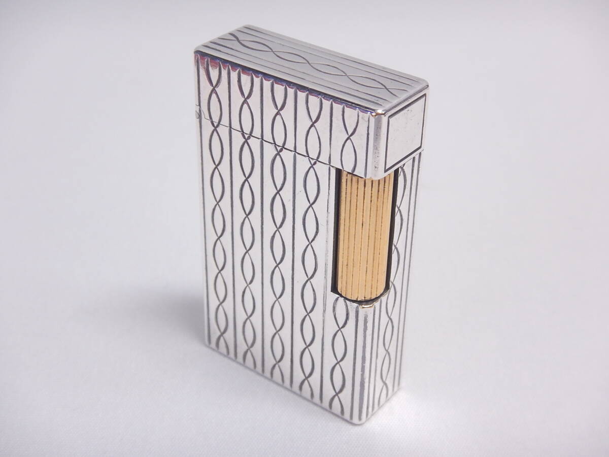 極美品■DuPont デュポン ガスライター ライン1 ウェーブ 波模様 シルバー■