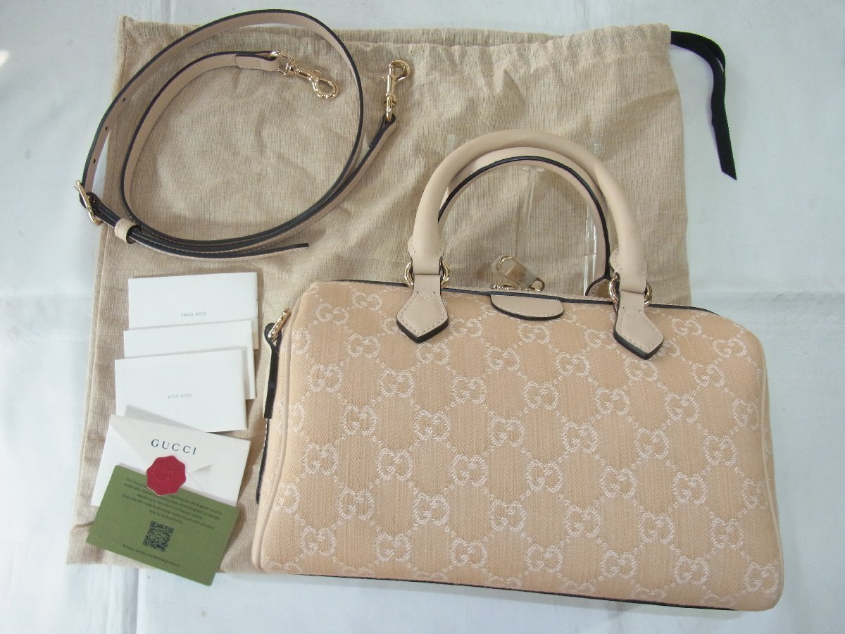 | グッチ GUCCI オフディア スモールトップハンドルバッグ 2WAY ショルダー付き GGキャンバス・デニム キャンバス RFID ライトベージュ 中古美品 | |