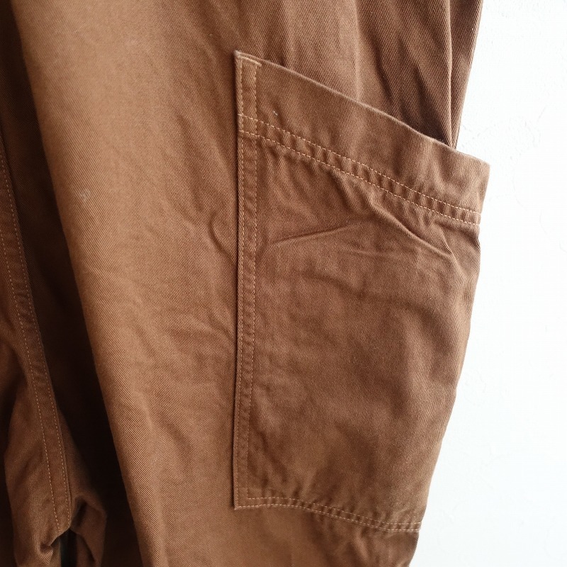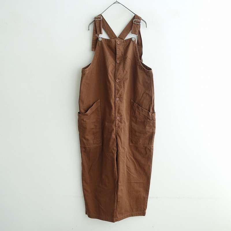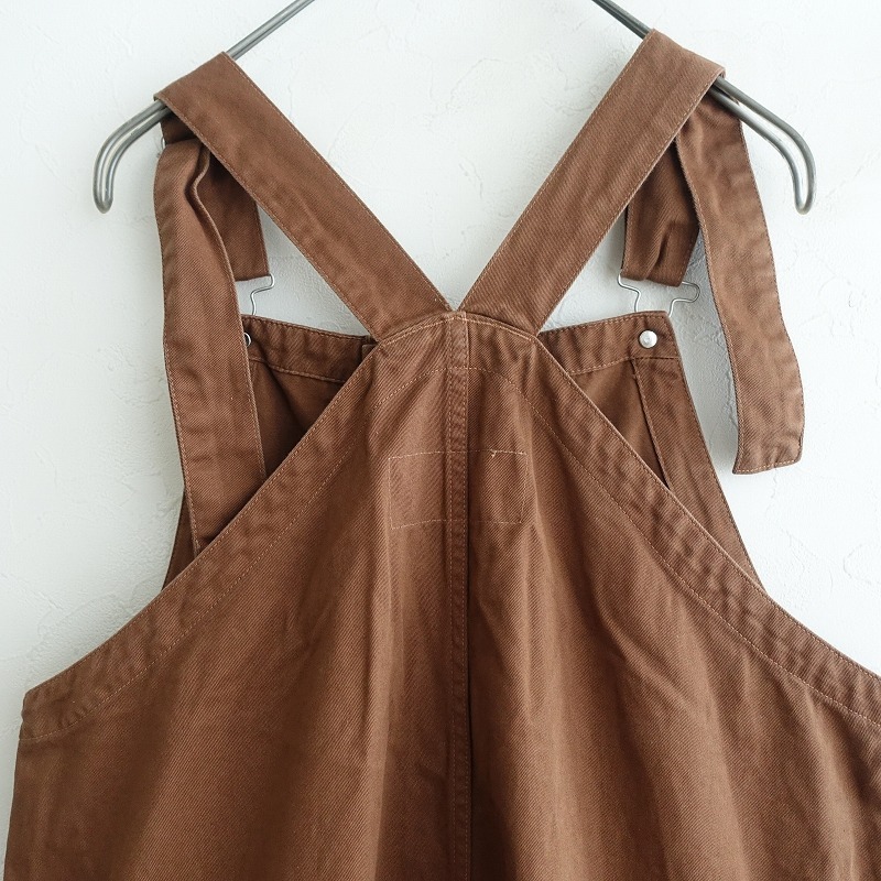 HARVESTYのチノクロスオーバーオールです。カラーはブラウンで、コットンのチノクロスで仕立てられています。肩ひもは長さ調整可能、前身頃にボタンがあしらわれ、両サイドにポケット付き、定価(メーカー希望小売価格) 22,000円の商品です。 |