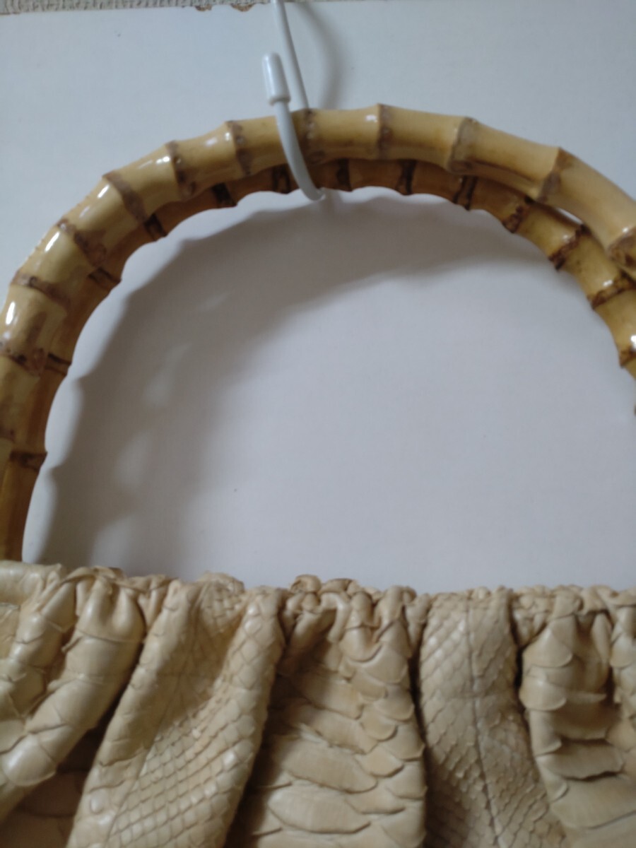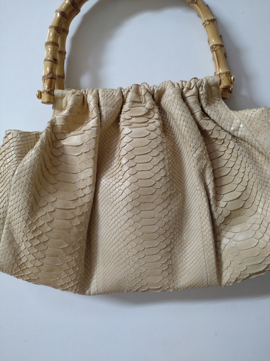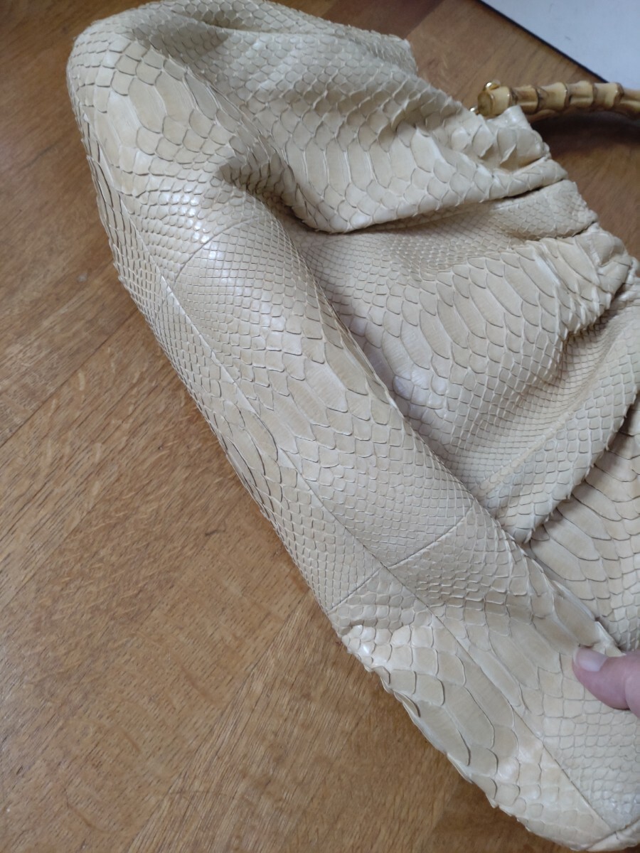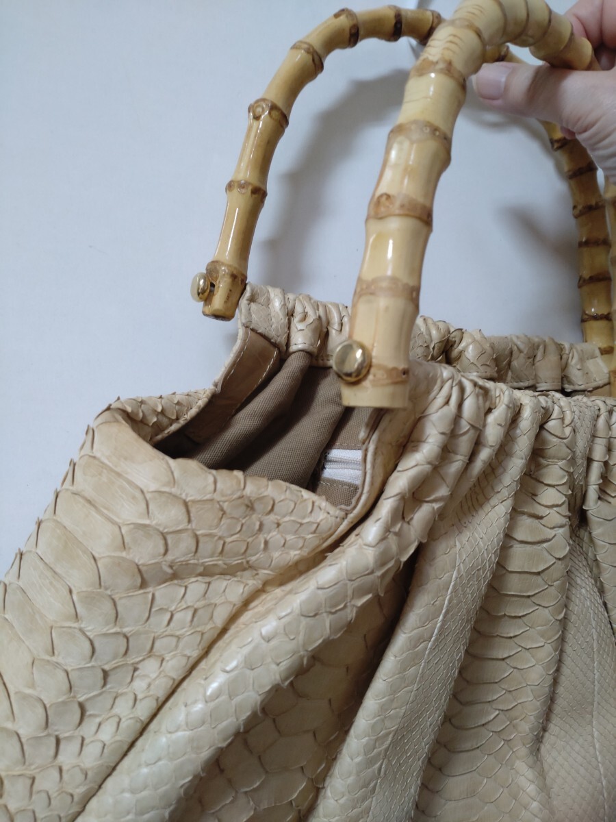 MAURIZIO PECORARO マウリツィオ ペコラーロ ヘビ革トート バンブーハンドル イタリア製 横43 縦28(ハンドル 含まず) 華やかなパイソン革が贅沢に使用されたバッグです。 大切にしていたので、状態はキレイです。