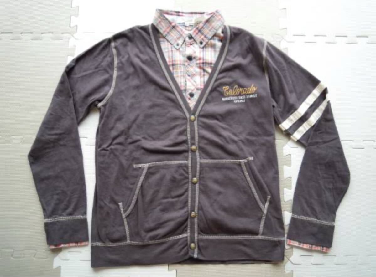一枚で重ね着をしているようなコーディネートが楽しめるカーディガンです。インナー部のチェックシャツは、ボディ前半分と裾、袖の見える部分のみに取り付けられているだけで、本体は一枚モノの薄手のカーディガン。重ね着にありがちなゴワゴワ感がなく、すっきりと着られます。カーディガン部分は、胸や背中に刺繍やプリントが入り、左腕に入った2本のラインがカレッジ風。インナー部分のチェックシャツと合わせてアメカジテイスト満点です。カーディガンの色ごとに中のチェックシャツのデザインを変えているのもポイント!