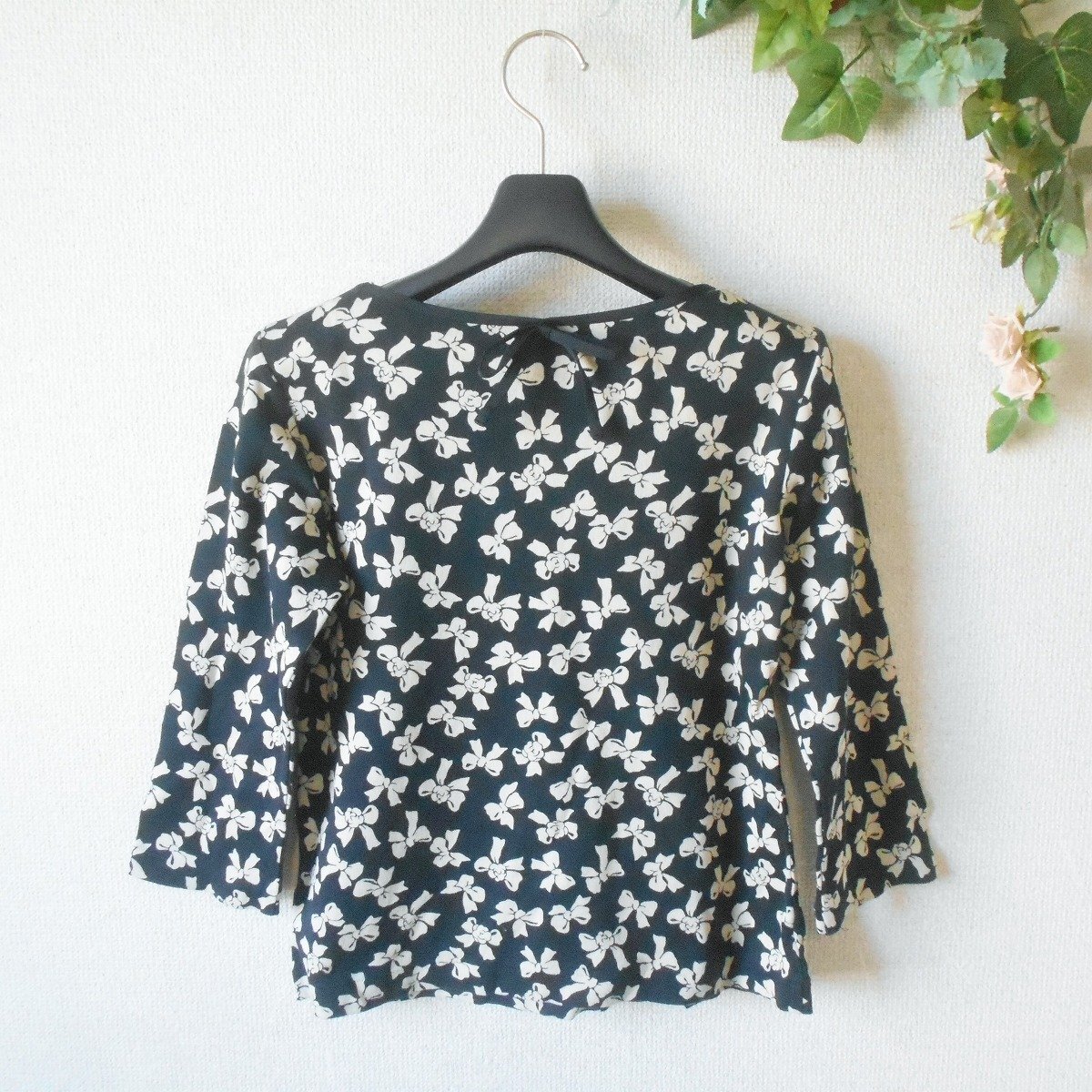【ポイント】インゲボルグの7分袖カットソーになります。お色は黒色ベースで、リボンのプリントが全体に入っています。