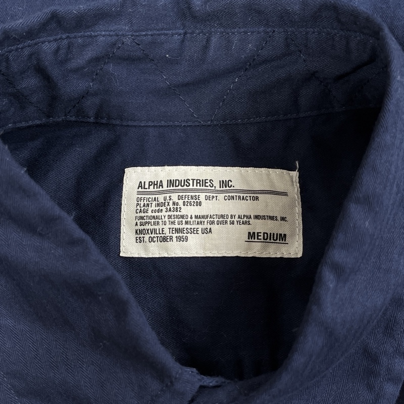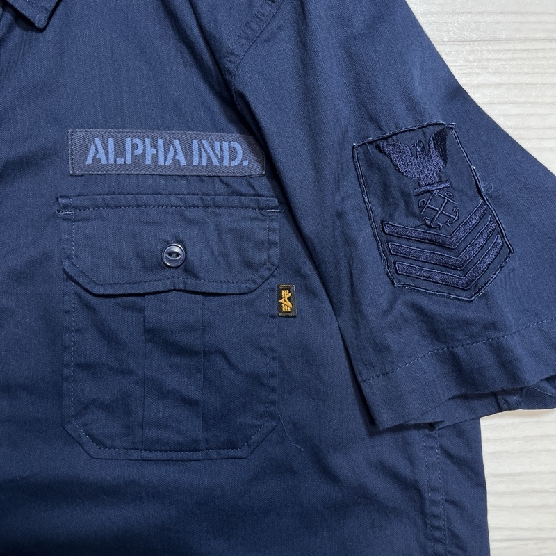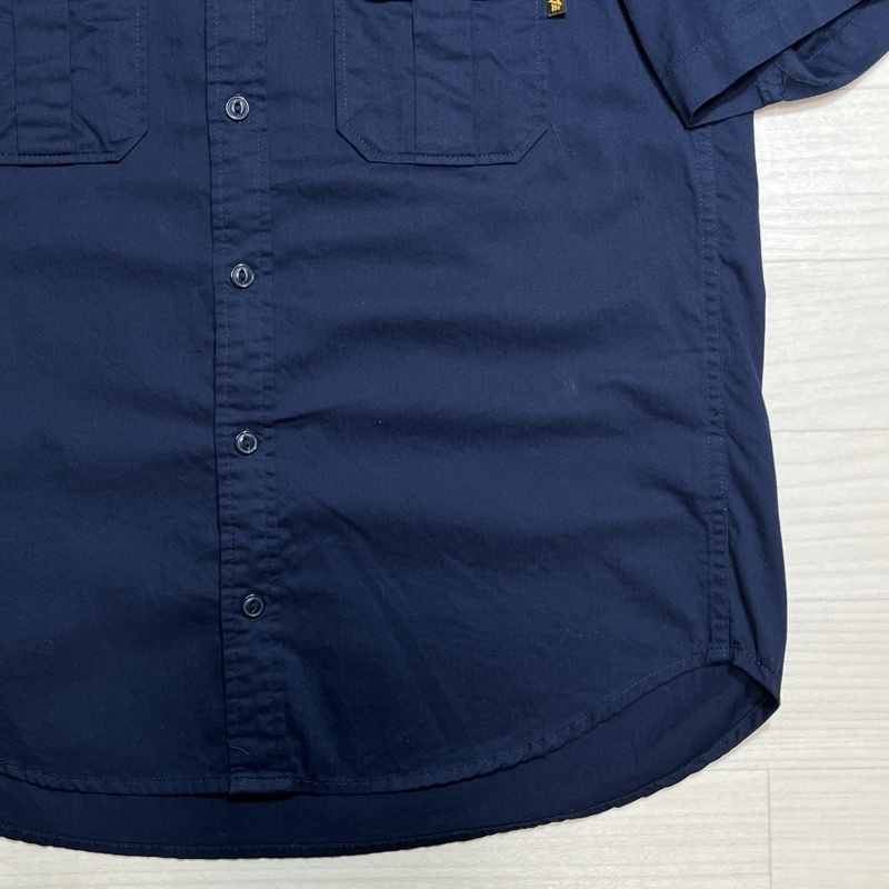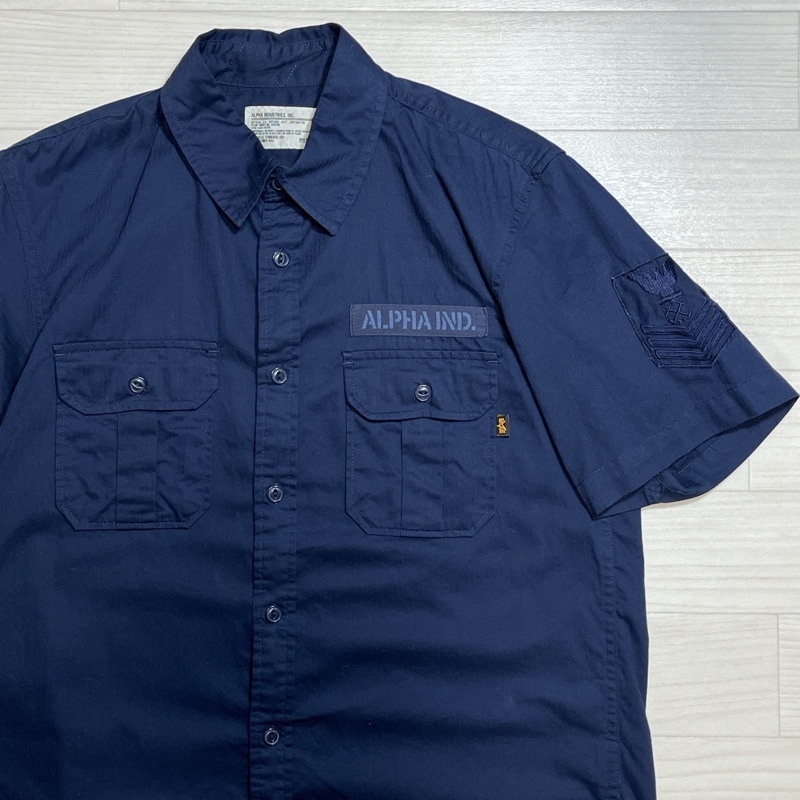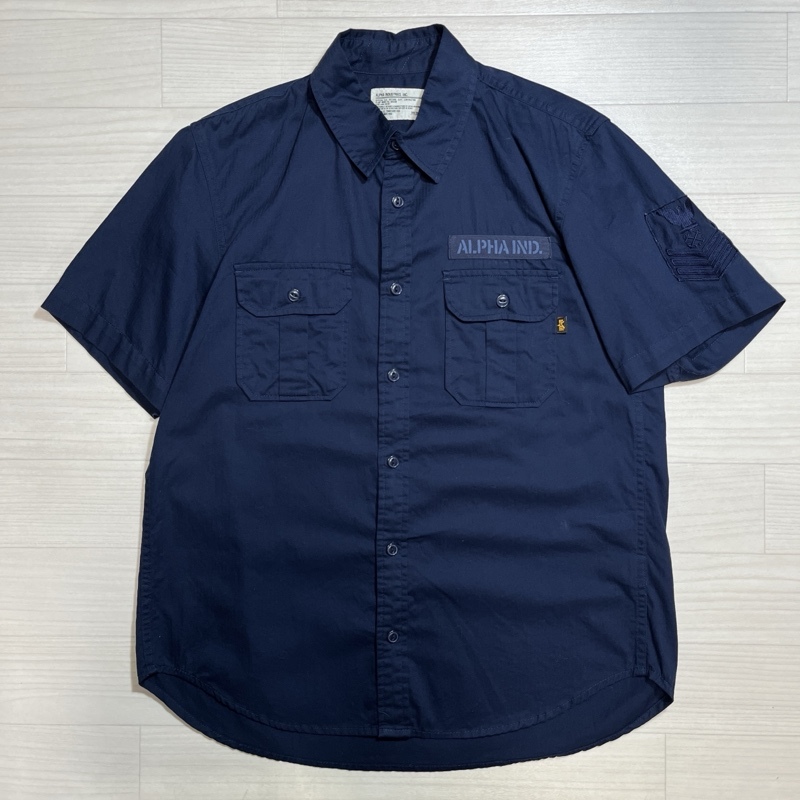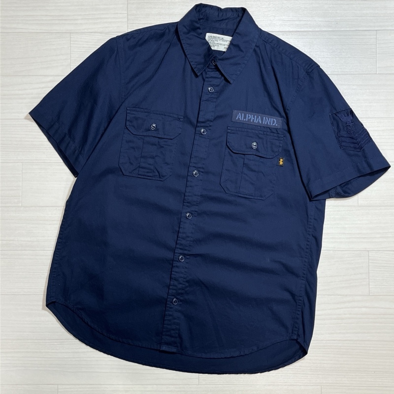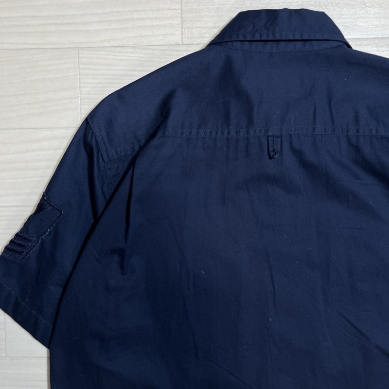 AVIREX/アヴィレックス/アビレックス/HERRINGBONE S/S MILITARY SHIRT/ヘリンボーン 半袖ミリタリーシャツ/胸・袖ワッペン/ネイビー
