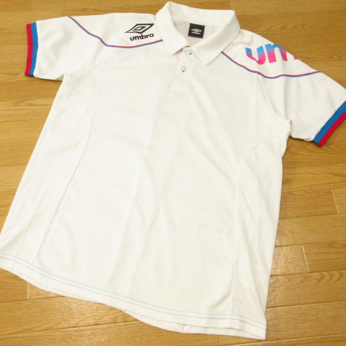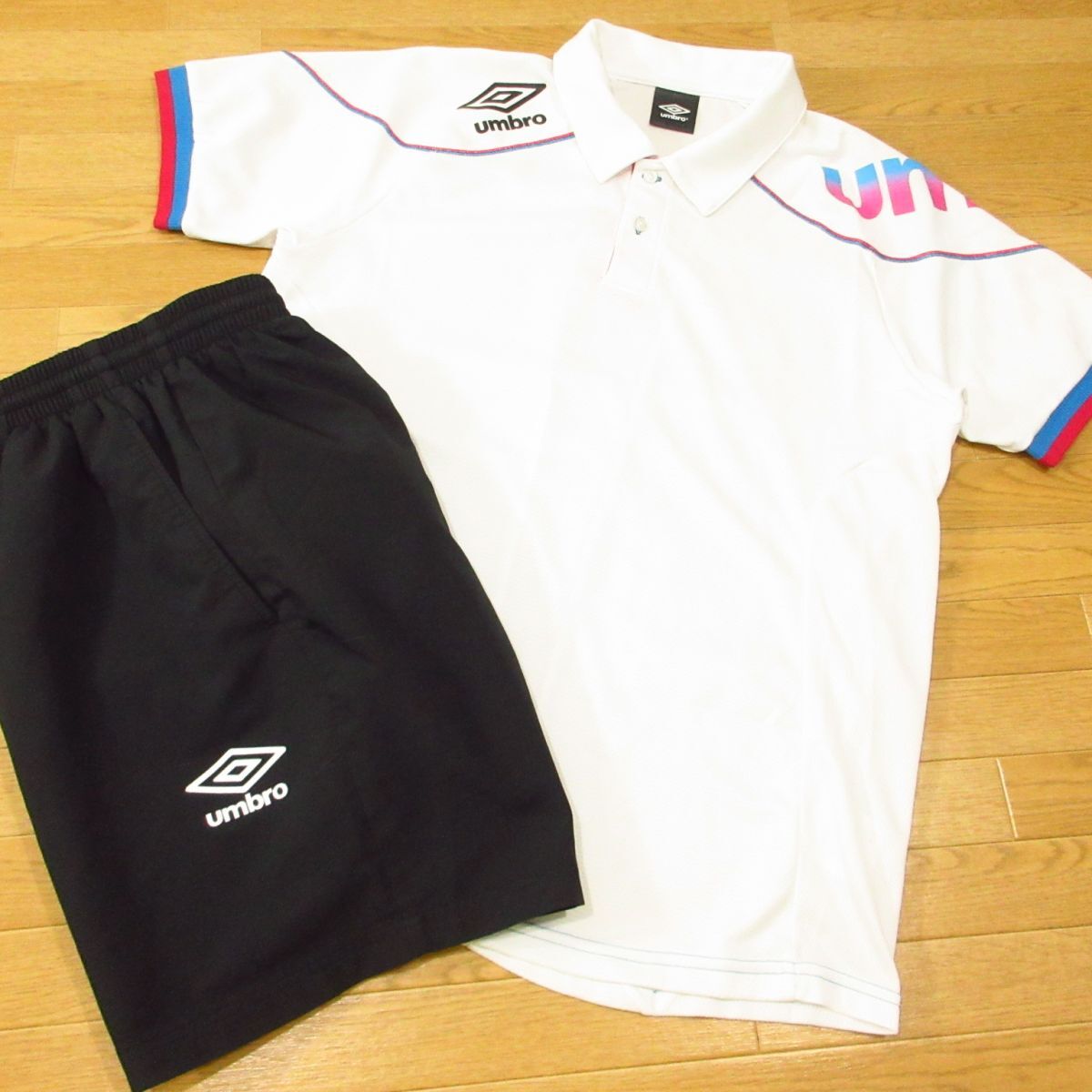 ◎使用少なめ!UMBRO アンブロ Lサイズ 上下セット 半袖 ポロシャツ&ハーフパンツ ショートパンツ ドライ 速乾 メンズ 白x黒◆BA3104