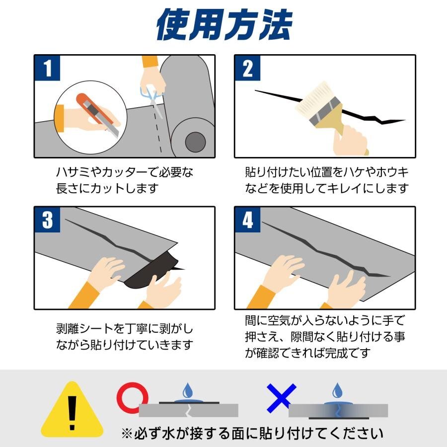 ・防水効果を確保するため、テープは水に直接触れる側に貼り、水の浸入を防ぐために裏面には貼り付けないでください。