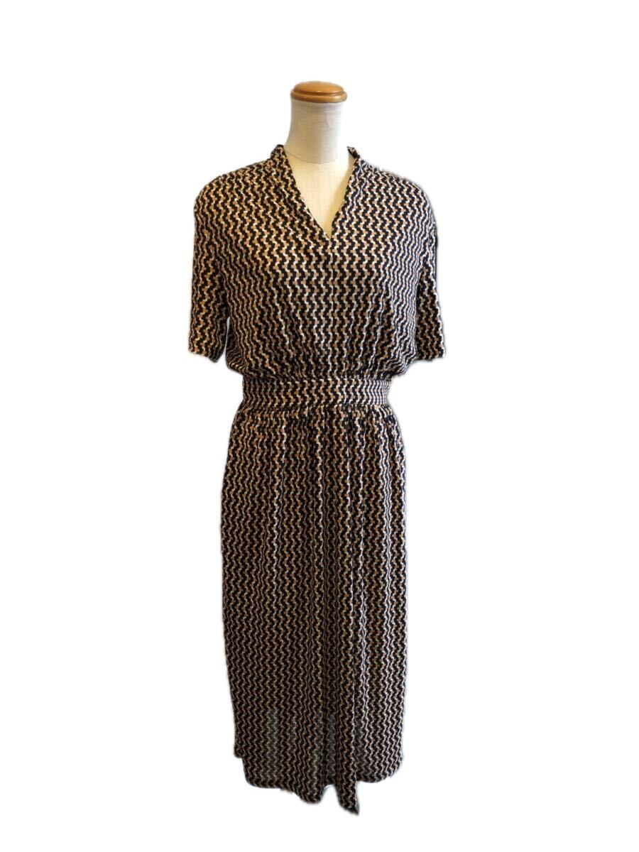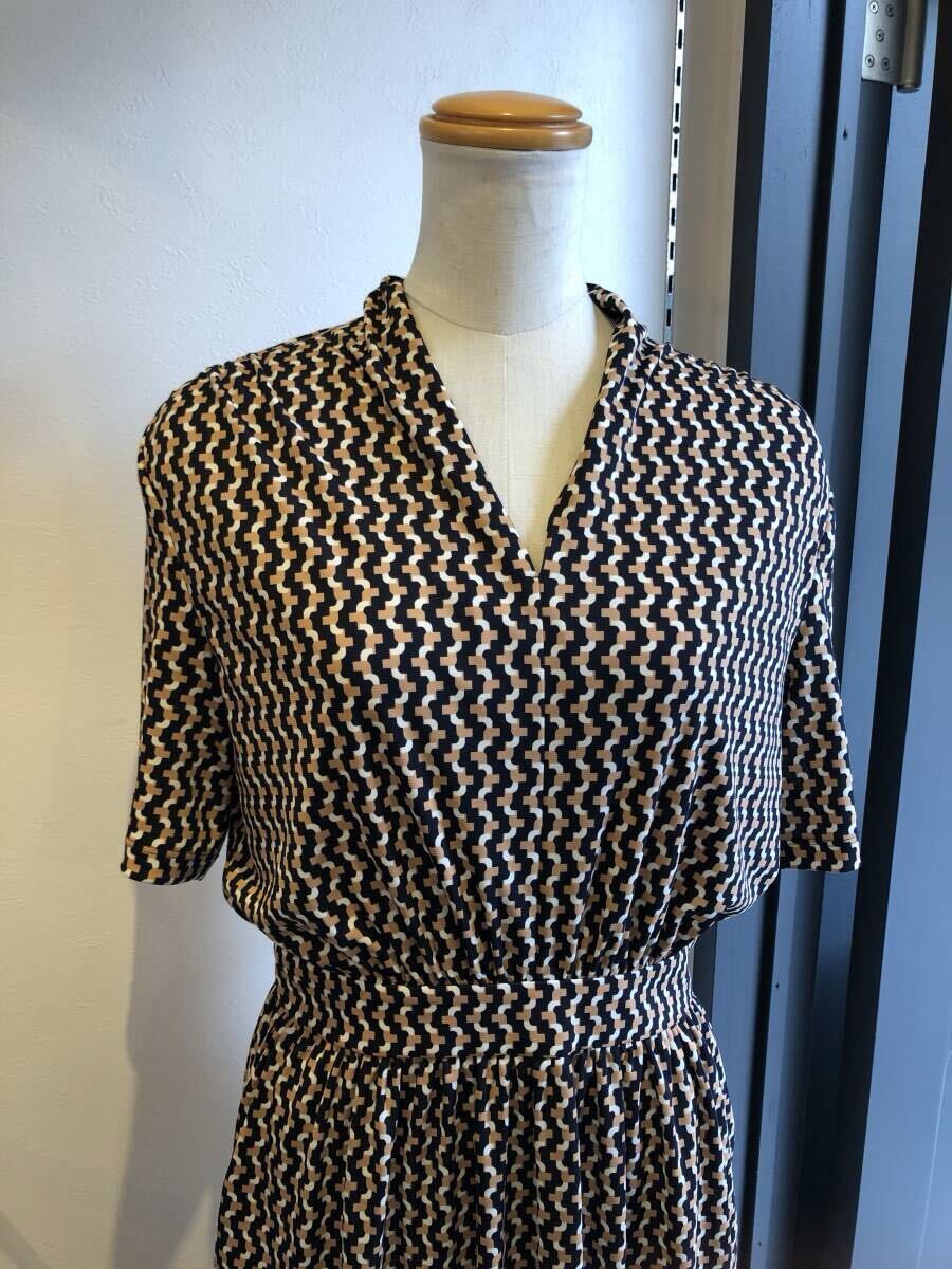 438☆UNITED ARROWS ユナイテッドアローズ☆タグ付き 総柄ワンピース【36】ブラック×ベージュ