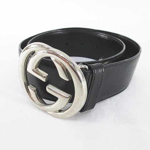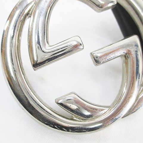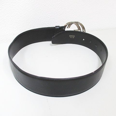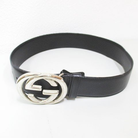 グッチ GUCCI インターロッキングG 太ベルト GG 65・26 036 194 0979 イタリア製 レザー 黒系 ブラック トップ式 バックル 小物 レディース