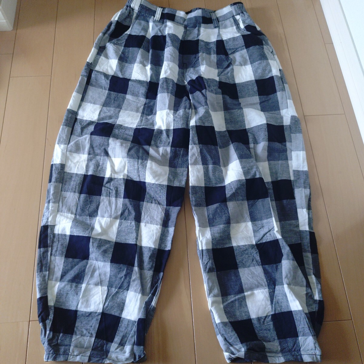 スタジオクリップコットンリネンレーヨンパンツです。ブラック系のブロックチェック柄。3回位着用。比較的綺麗な状態だと思いますが、細かな点気になる方はご遠慮ください。たたみじわあります。