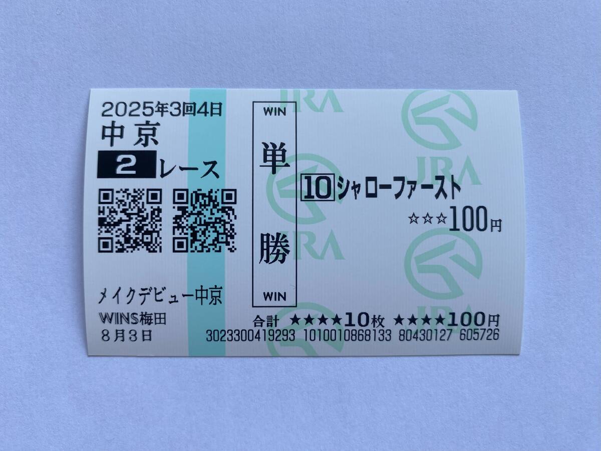 シャローファースト メイクデビュー中京 場外単勝馬券