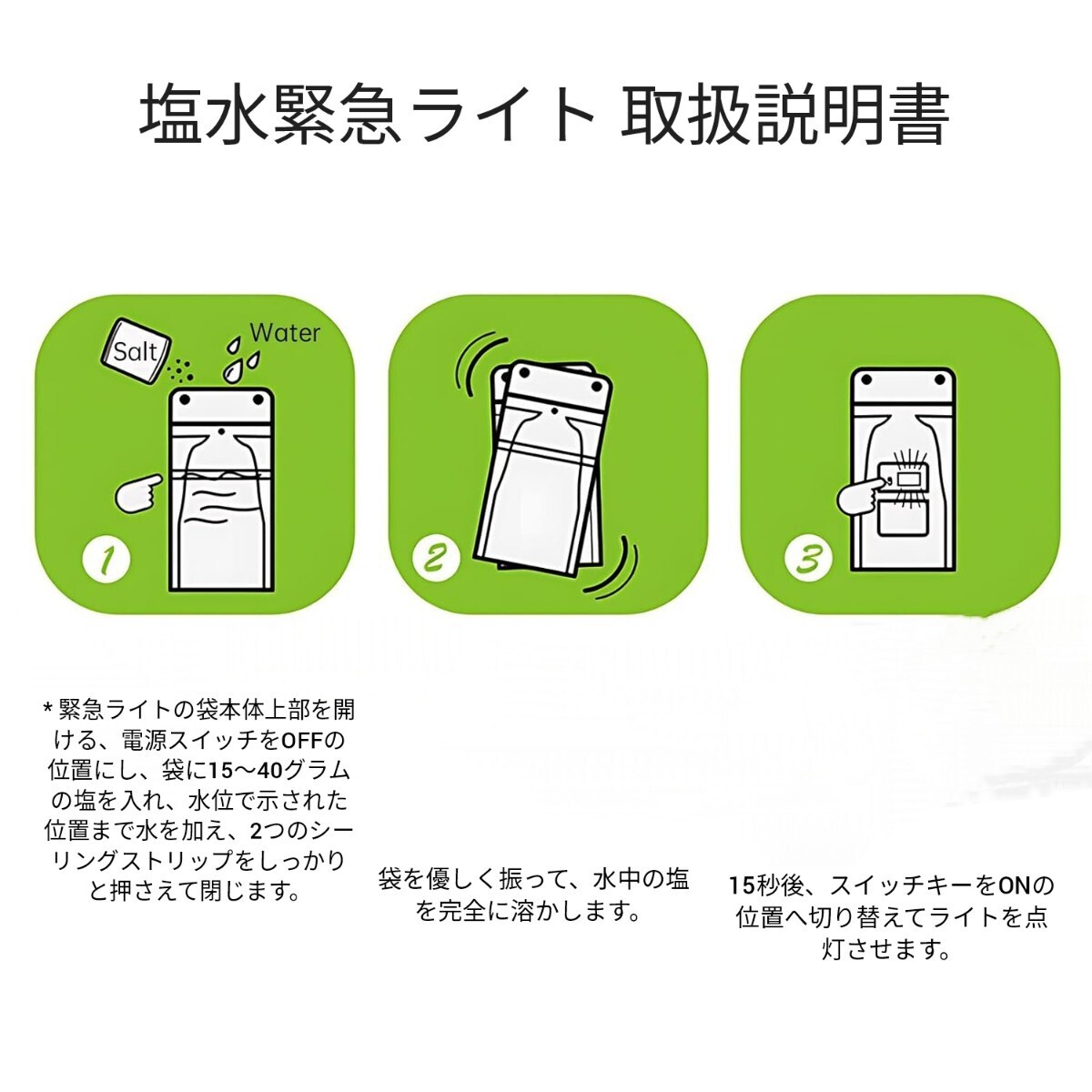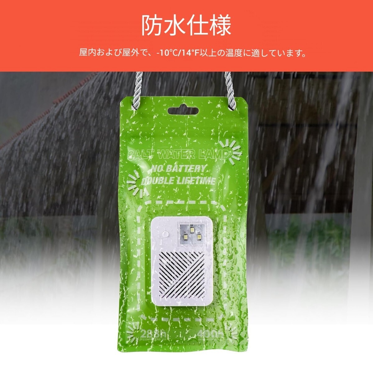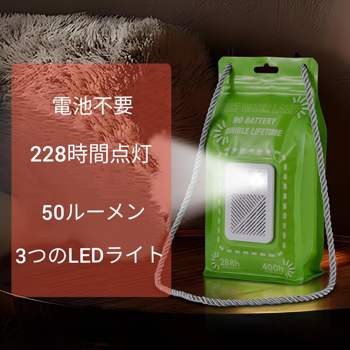電池や充電が不要。塩水を注ぐだけで即点灯します。