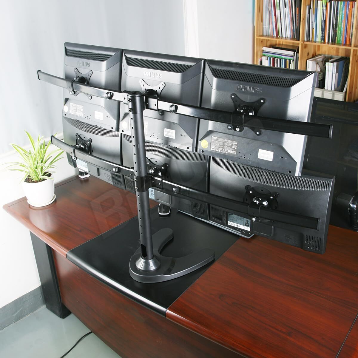 | 360度回転可能 モニターは360度自由な角度に調整できます。 左右方向へはスライドさせることで任意の位置に無段階調整することができます。上下方向に角度調整も可能です。 アームは支柱に空けられた穴2カ所でボルト止めなので、しっかりと固定することができます。 穴の位置を変えることで簡単に高さ調整が可能です。 アームと支柱はとても高剛性な作りとなっていますので、ズッシリとした重量感があります。 また脚部は幅広設計となっていますので高い安定性を保ちます。 最大耐荷重が40kgという頑丈なモニタースタンドです。 VESA規格の取付部に対応しています(75×75mmまたは100×100mm) ケーブルクリップ付きなのでモニターからのケーブルをまとめることができ、支柱にケーブルを通すことができます。 対応モニター数 6台 本体重量 10.5kg 対応モニタサイズ 13~24インチ液晶モニタ VESA規格対応(ネジ穴距離) 75×75mm, 100×100mm 支柱径 48mm 耐荷重 最大40kg(各アーム10kg) 支柱高さ 760mm 材質 スチール アーム長さ 200~735mm カラー ブラック 上下調整角度 +/-15度 塗装 粉体塗装 左右調整角度 0度 取付説明書(英語) |