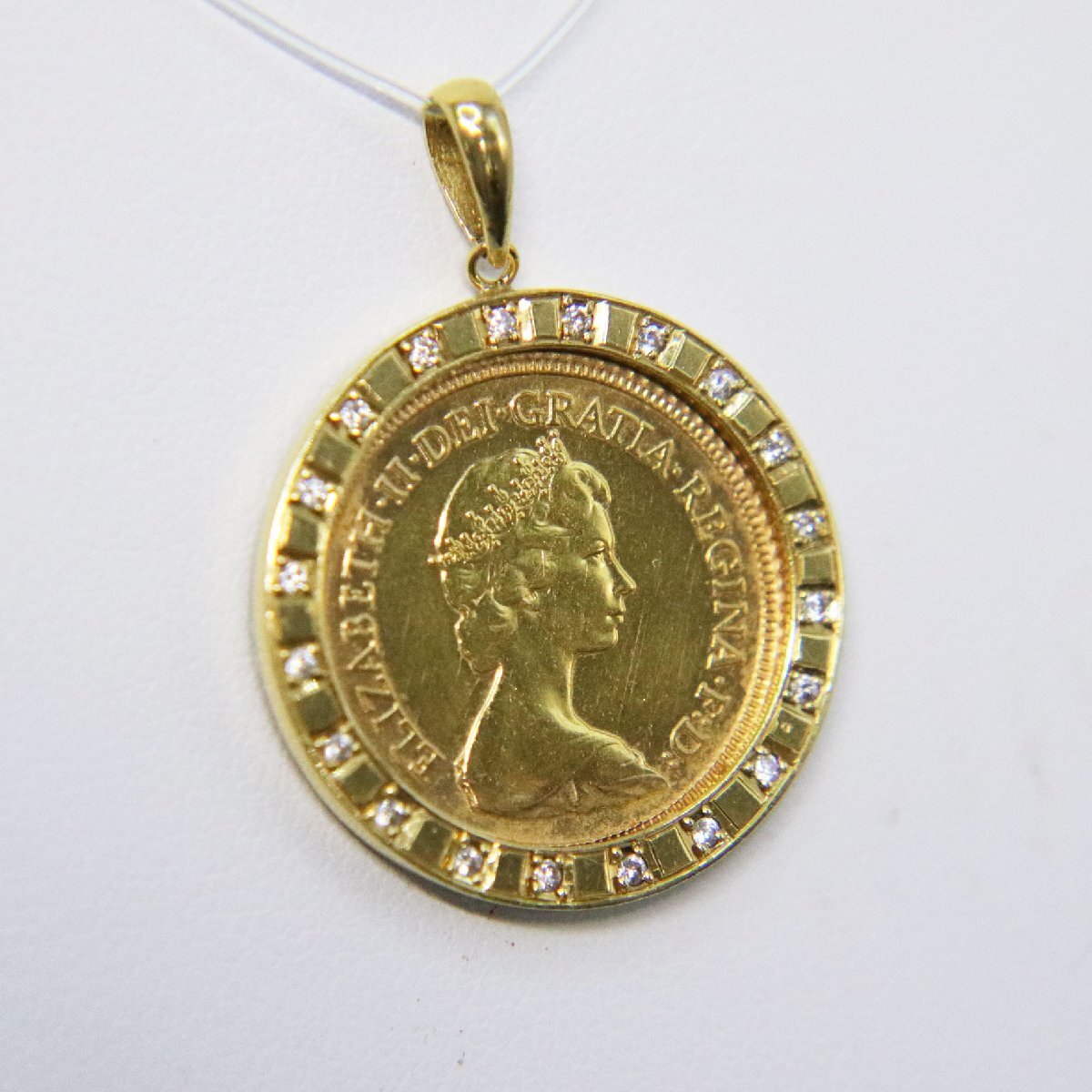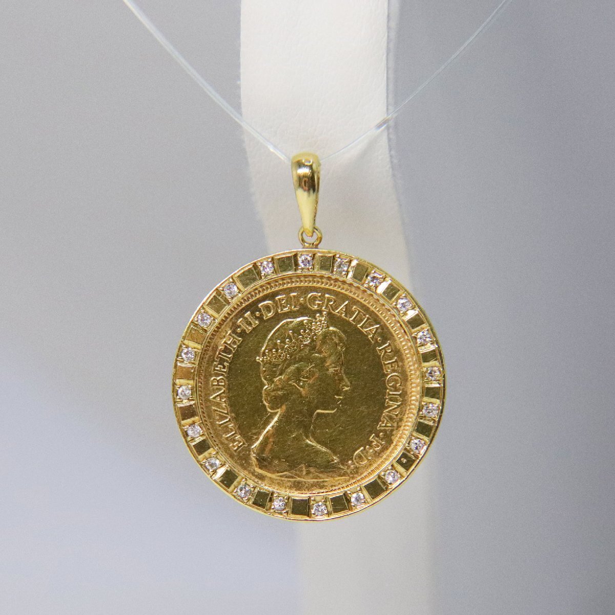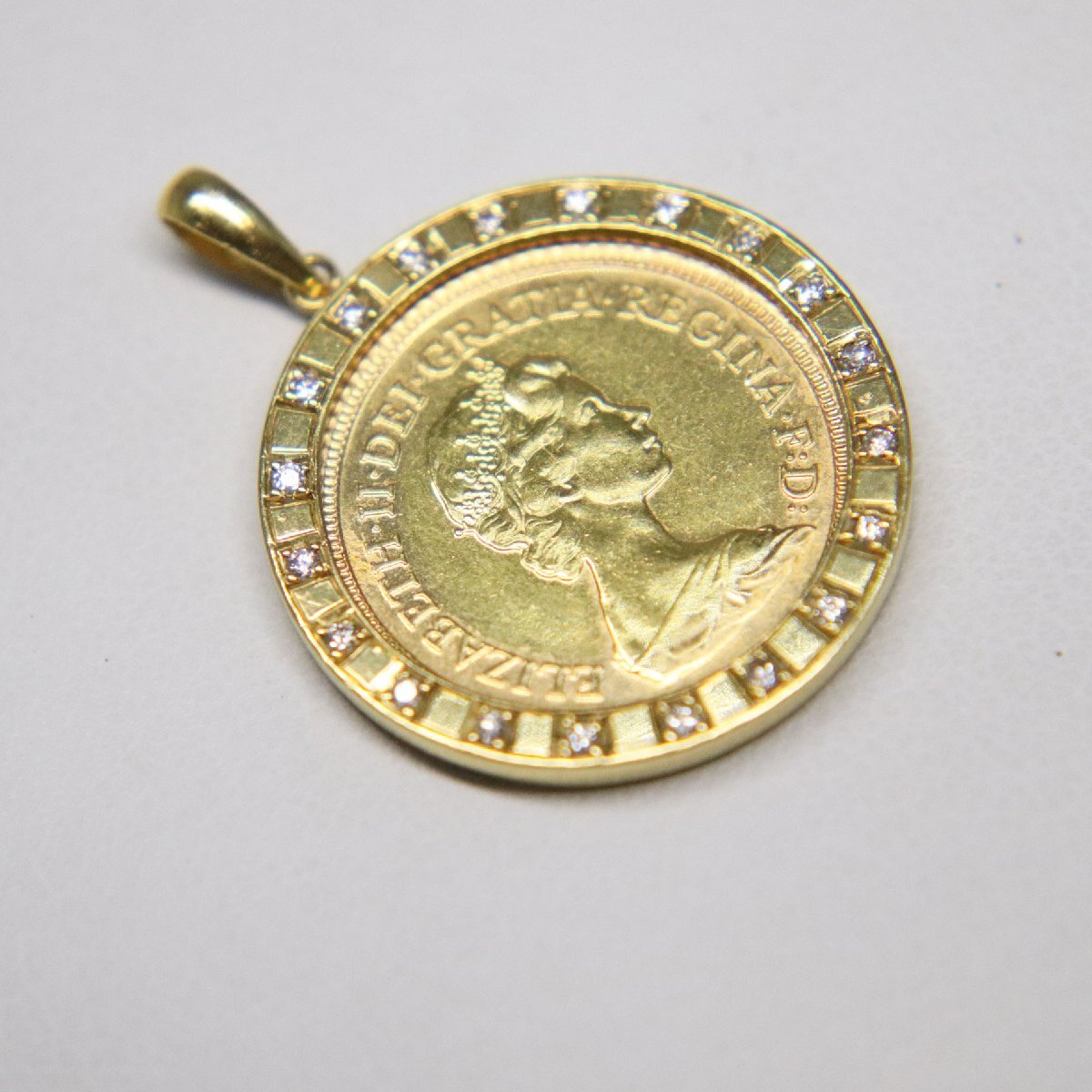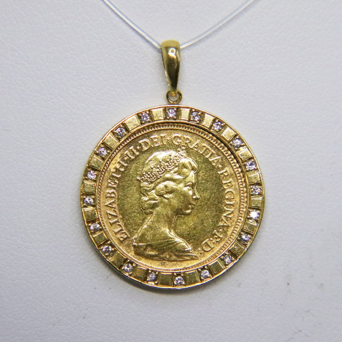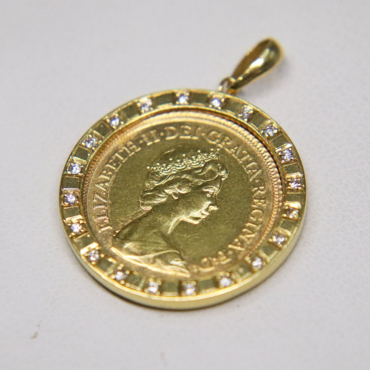 K18枠/K22 1982 ソブリン金貨 エリザベスII世 聖ジョージ 竜 馬 ペンダントトップ PH コイン 重量約6.6g pendant Sovereign 中古 送料無料!