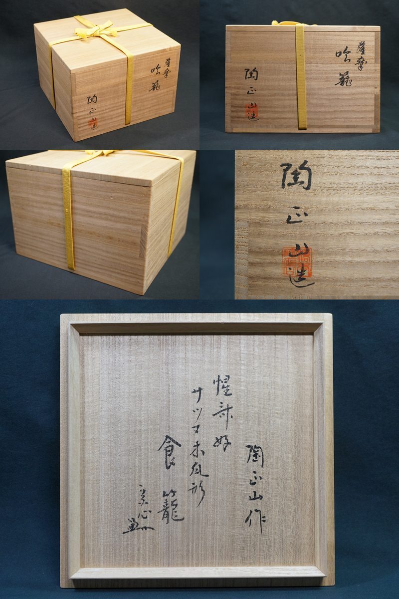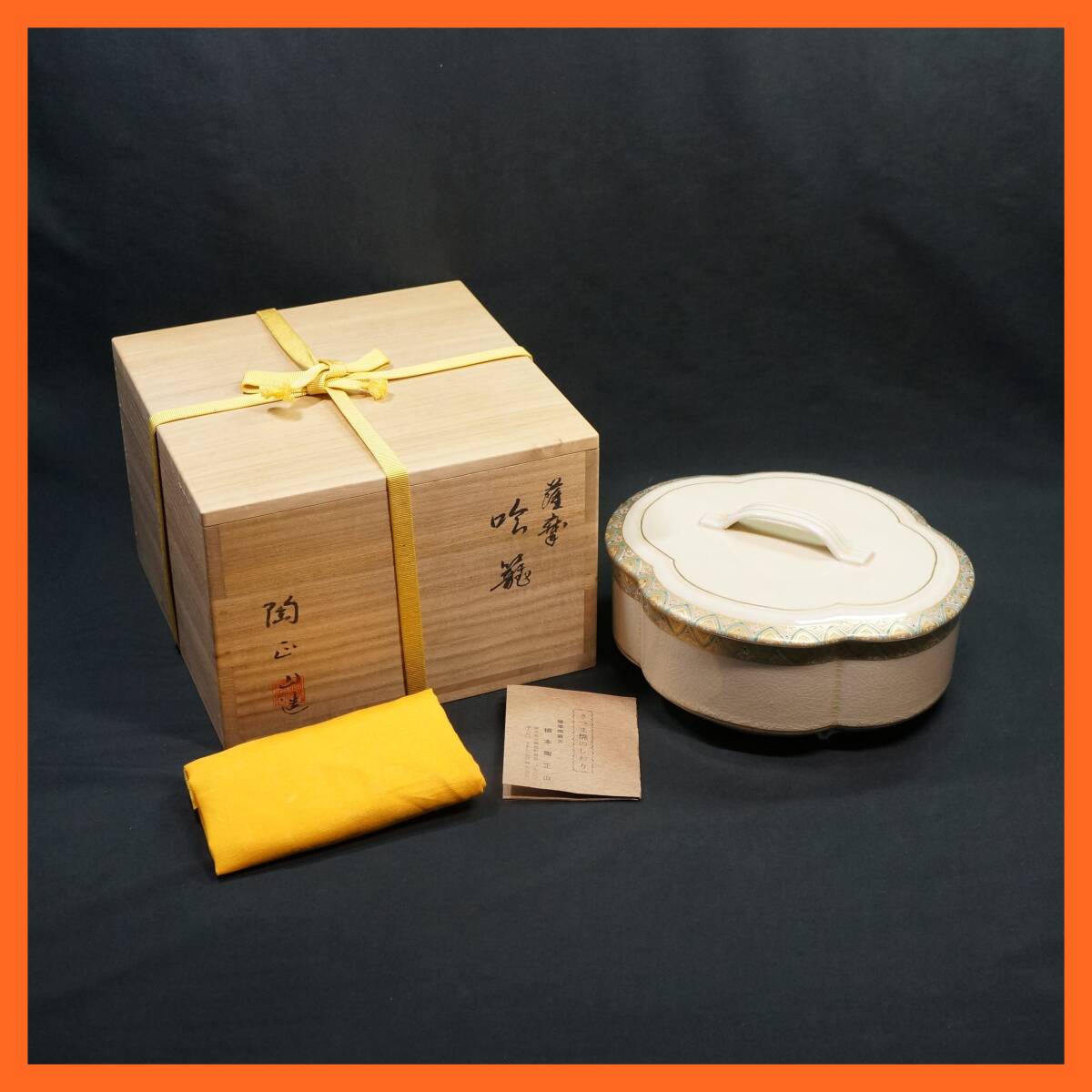 | 東ハ:【薩摩焼】窯元 橋本陶正山作 惺斎好 サツマ 木瓜形 食籠 喰籠 共箱付 堀内宗心書付箱 茶器 茶道具 さつま焼 ★送料無料★ |