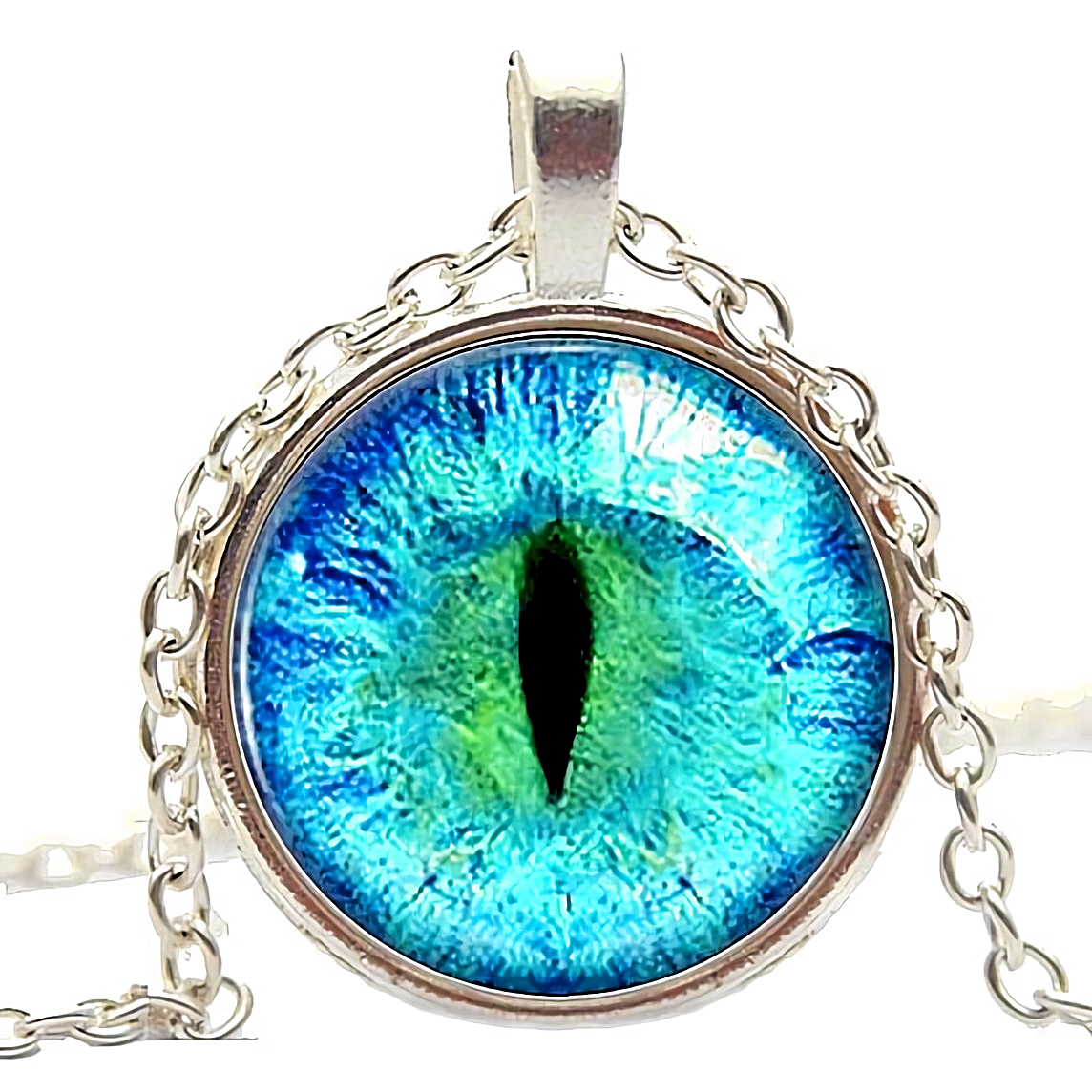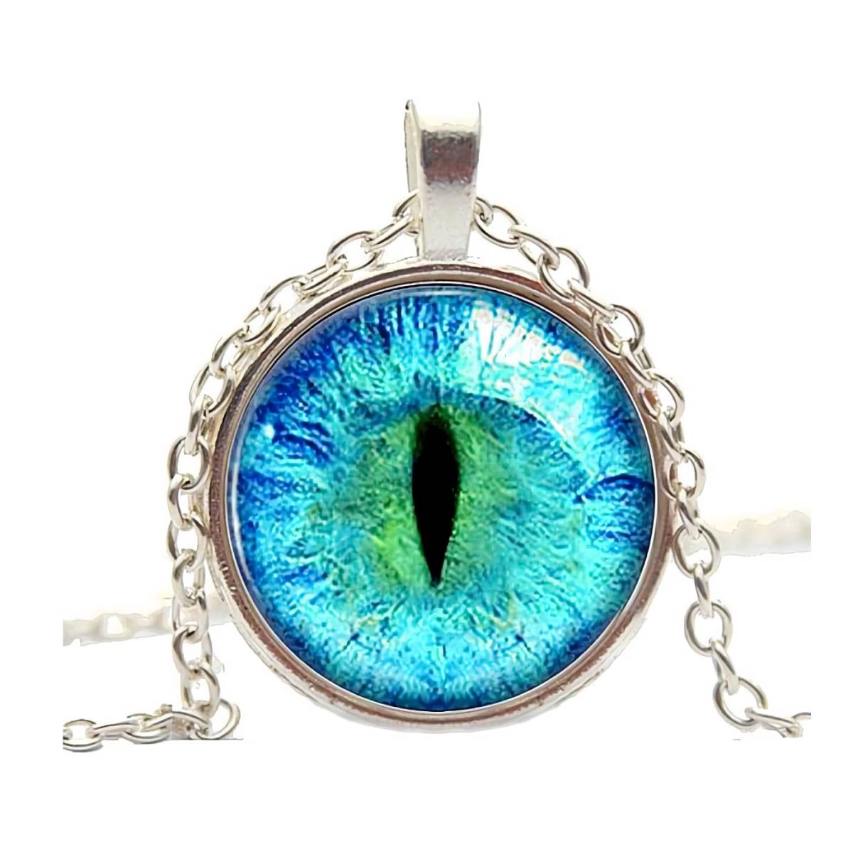 こちら鋭い眼光でこちらを伺う竜の目、コイン型のドラゴンプラチナ仕上げ925シルバーネックレスです。