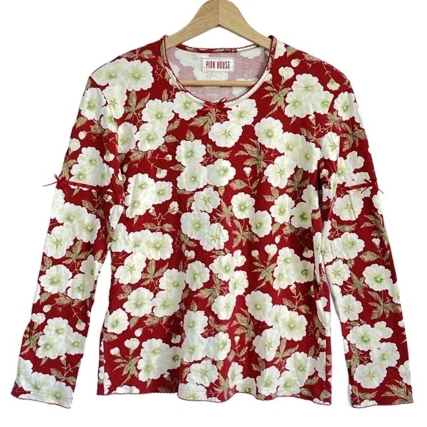 ピンクハウス PINK HOUSE 長袖カットソー サイズL - レッド×白×マルチ レディース 花柄/リボン トップス