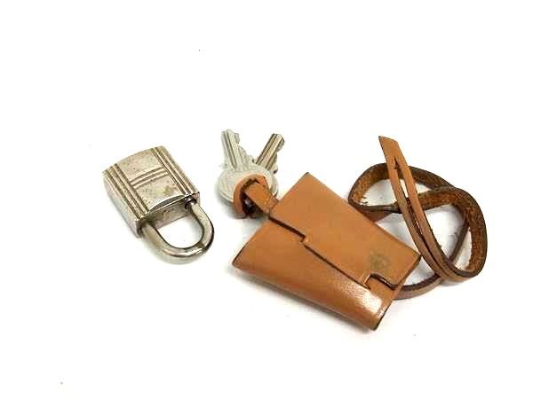 HERMES エルメス ボックスカーフ クロシェット カデナ 南京錠 パドロック 117 鍵 キー ブラウン系 DB1729