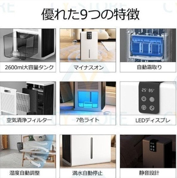 【自動湿度調整可能】常に設定湿度に保つように調整する自動運転モードもあり、設定湿度を超えると除湿運転、設定湿度以下になると加湿運転、設定湿度に達すると空気清浄運転のみ。水がなくなった時、満水の時は自動的運転停