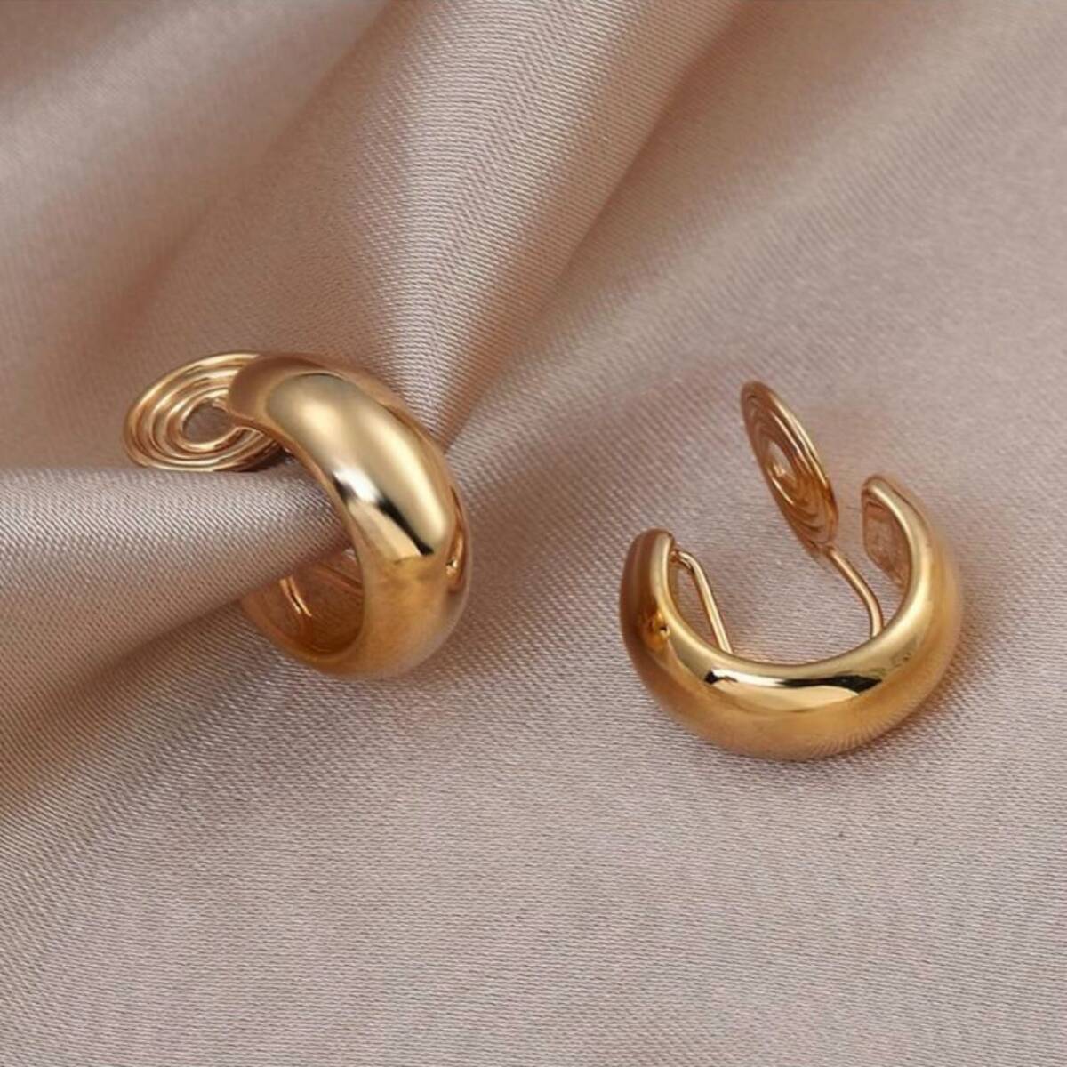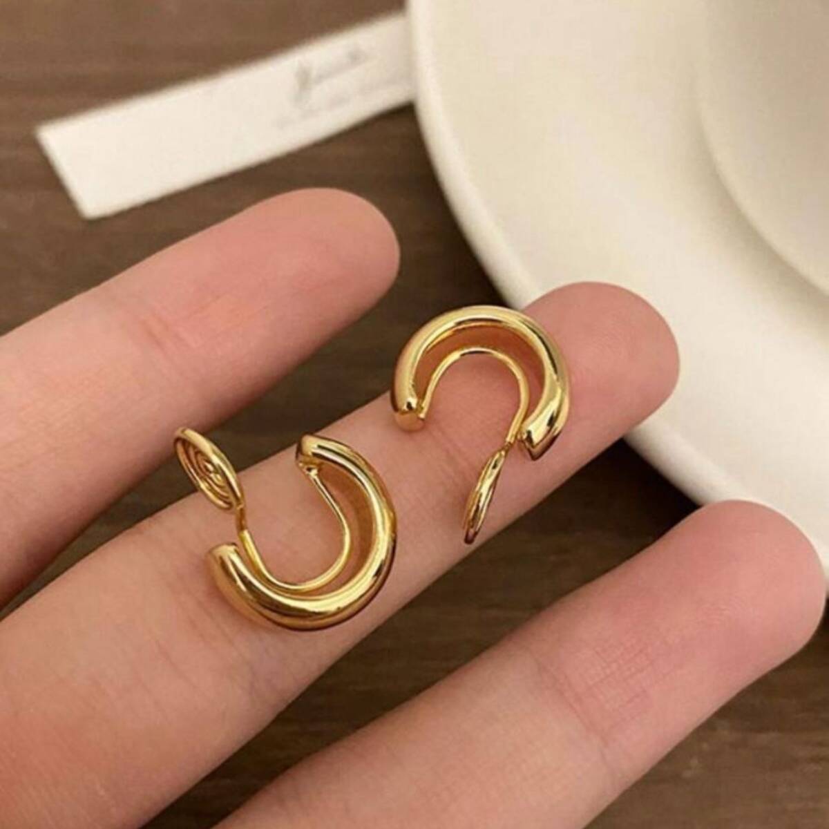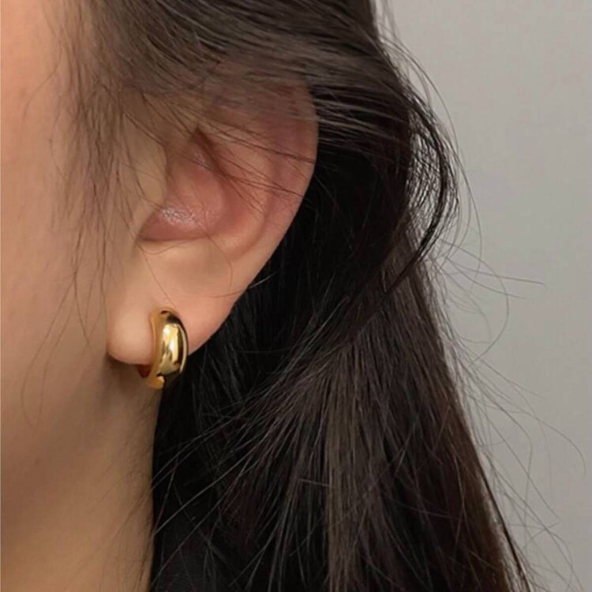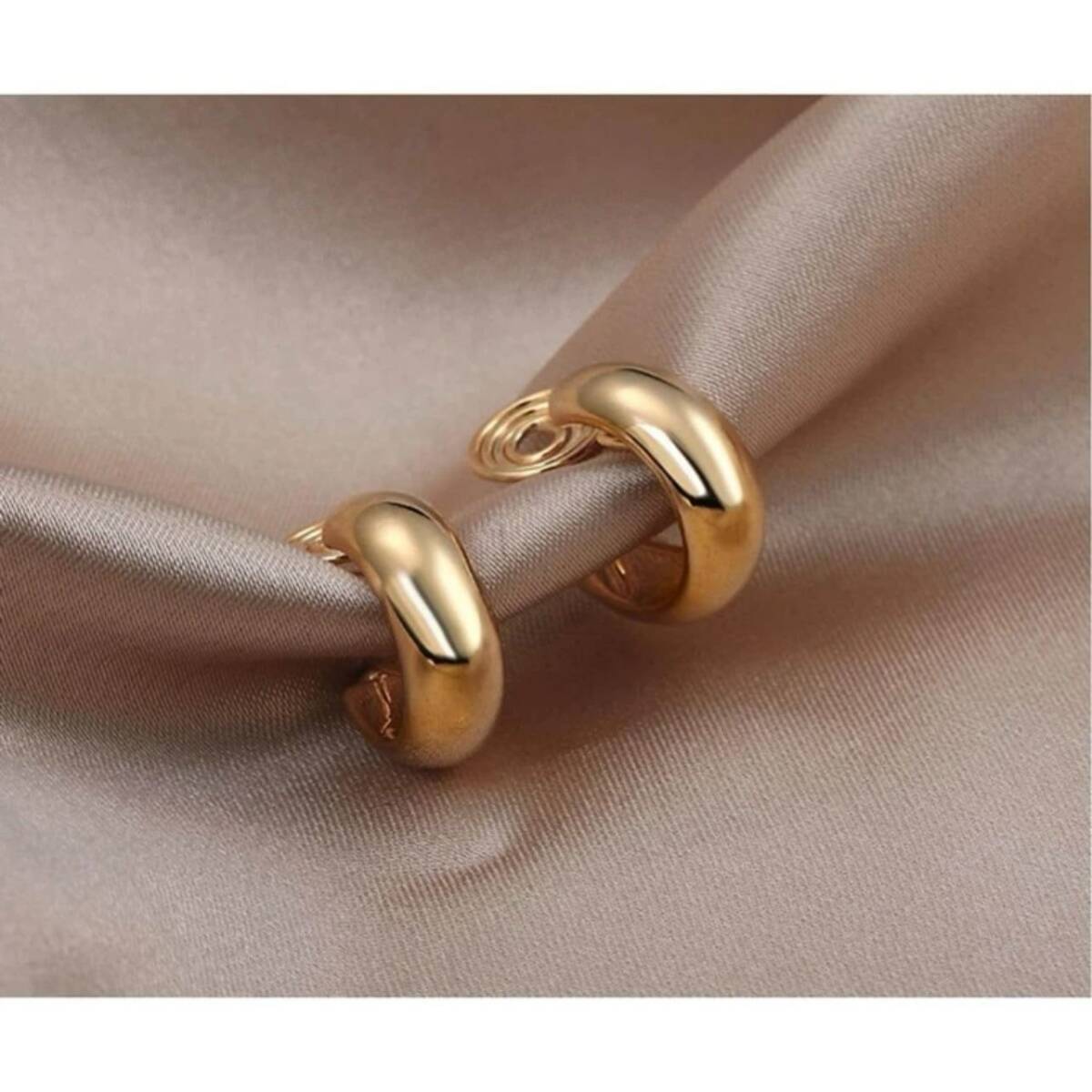 ゴールドのフープ風イヤリング。シンプルなゴールドデザインでピアス見えします◎