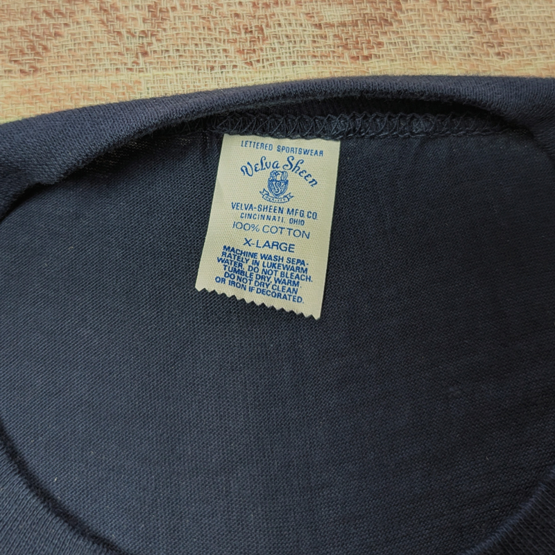 1970s Velva Sheen USNA Flock Print Navy T-Shirt / DEAD-STOCK