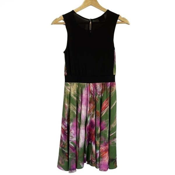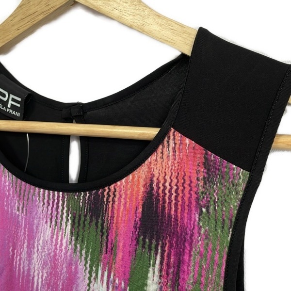 パオラ フラーニ PAOLA FRANI サイズ36 S - 黒×ピンク×マルチ レディース ノースリーブ/ひざ丈 新品同様 ワンピース