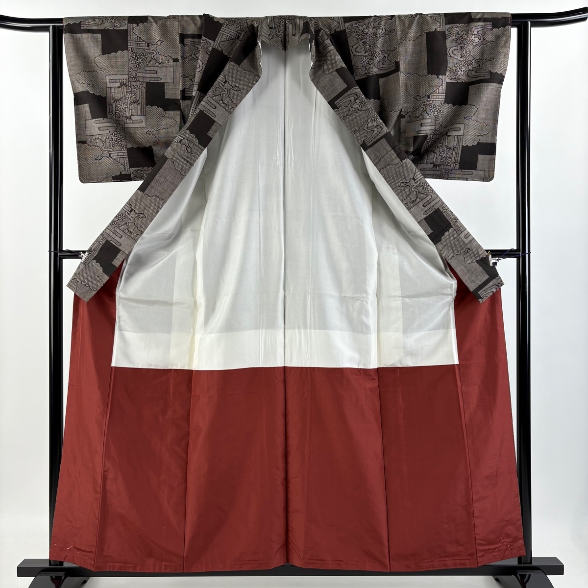 | 大島紬 美品 秀品 笹 雲文 焦茶色 袷 身丈159 裄丈63 S 正絹 【中古】 |