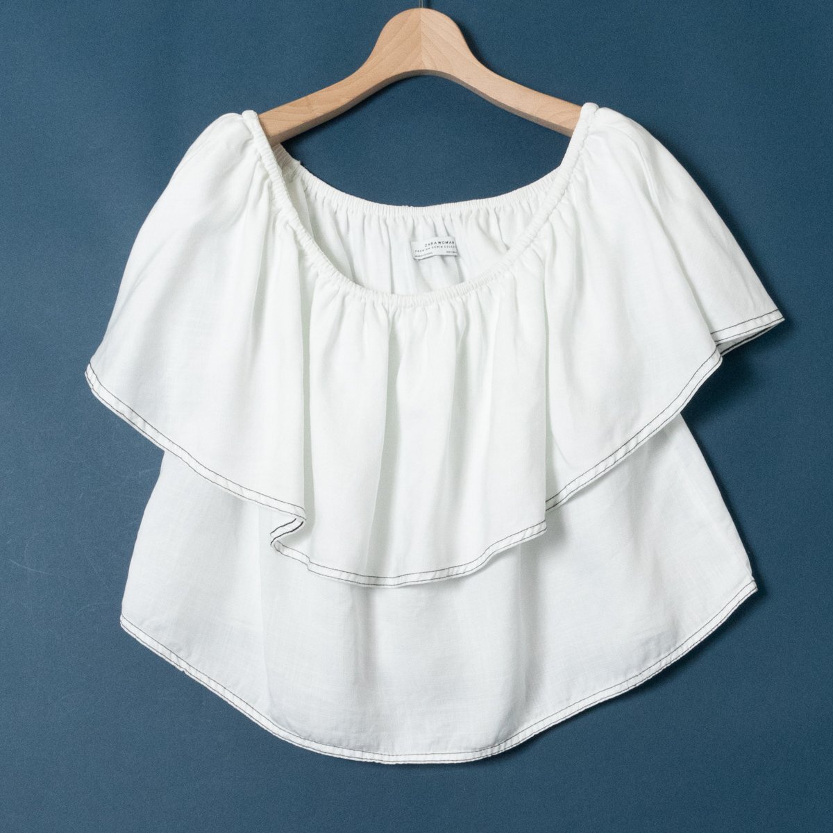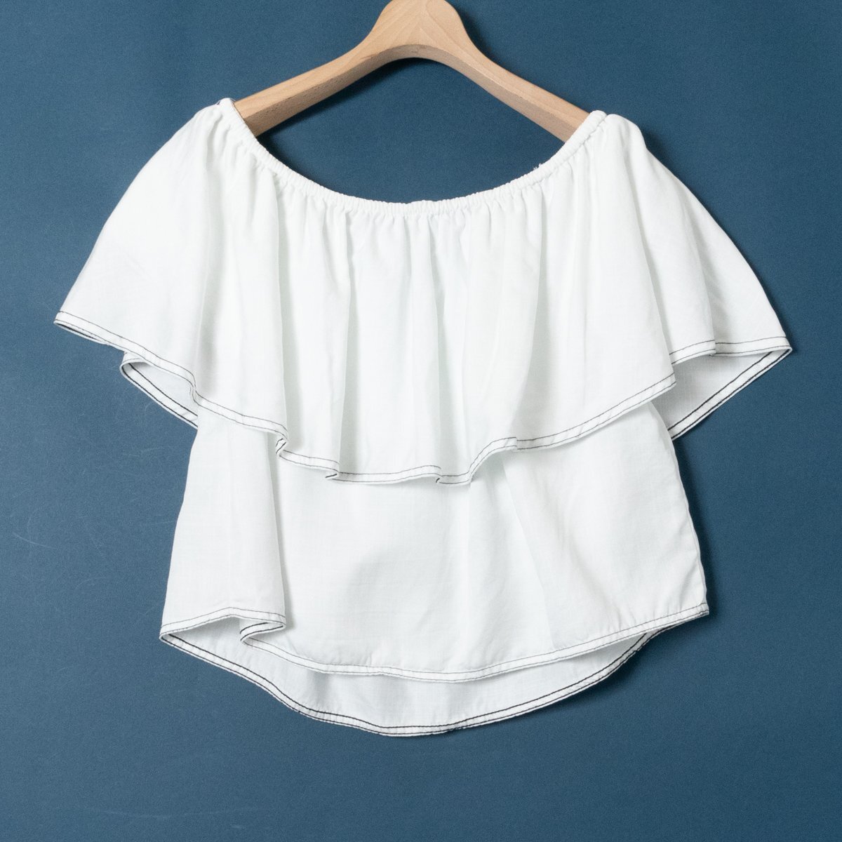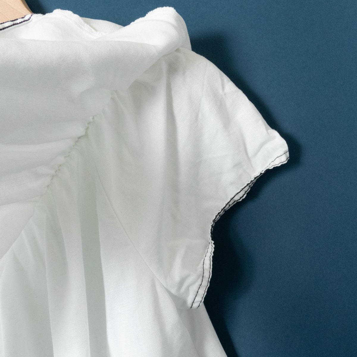 | サイズ | 表記サイズ:M バストゴム部分横幅:45cm 身幅:62cm 着丈:40cm 袖丈:17cm (ケープ部分長さ約)23cm |