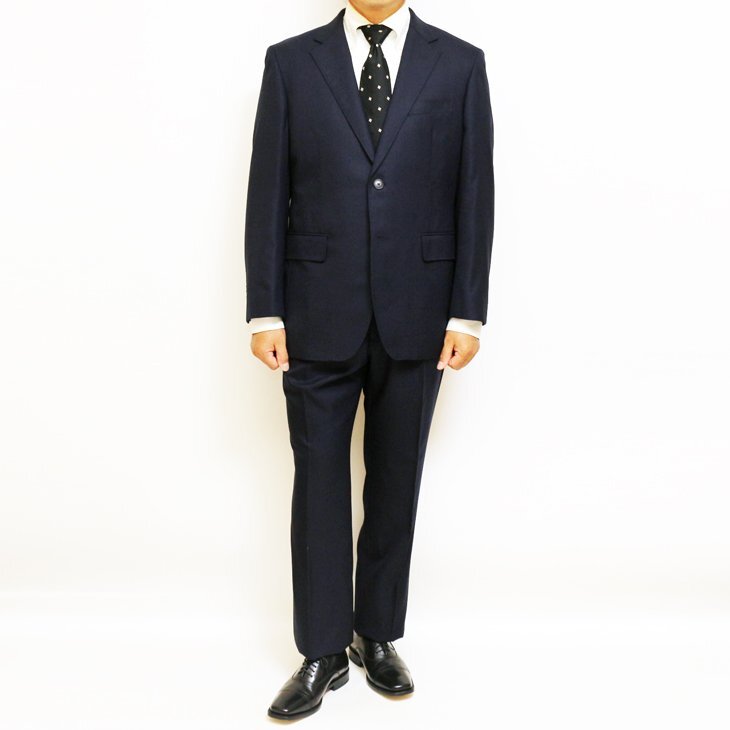 | 品名 | 秋冬モデル 西川毛織 Super110's 濃紺ネイビー無地 2つボタンスーツ | |||||||||||