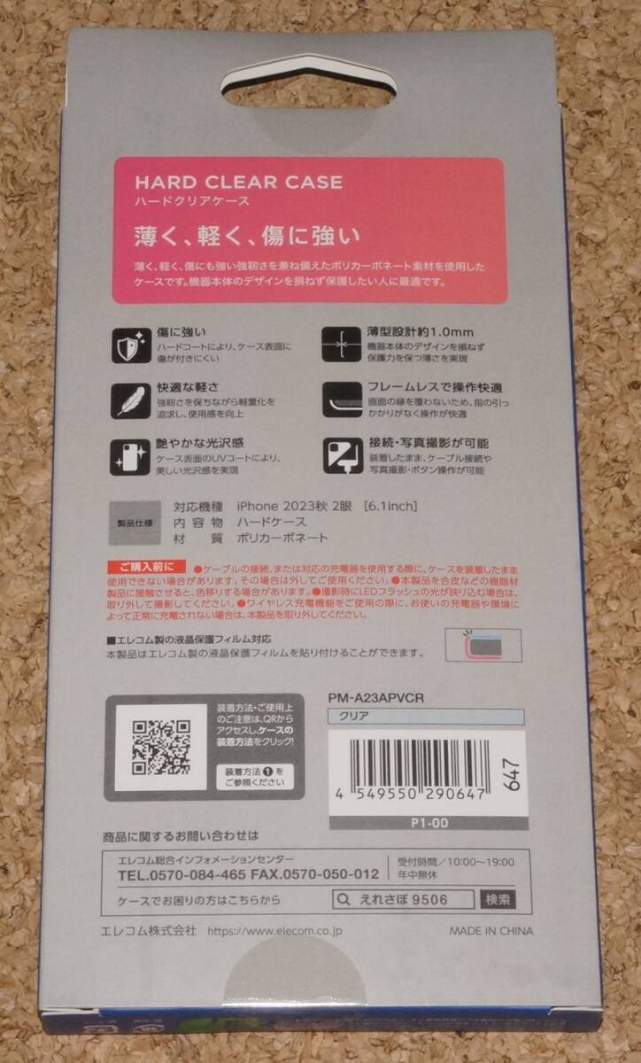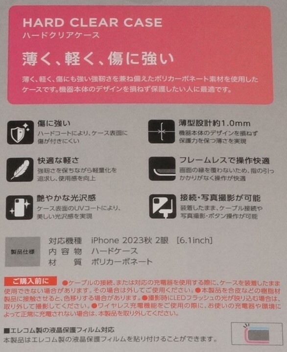 ELECOM iPhone15 ハードケース ストラップホール付き 新品・未開封です。