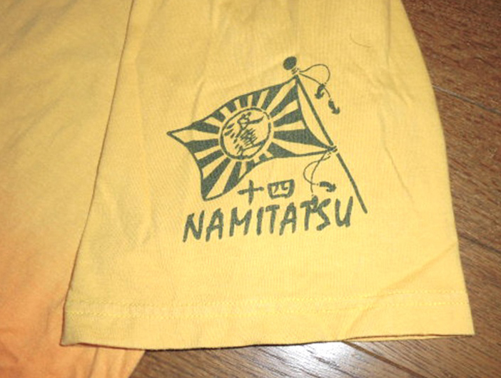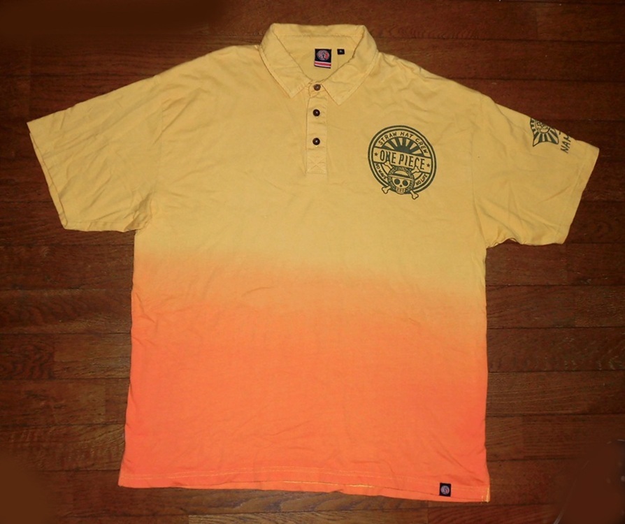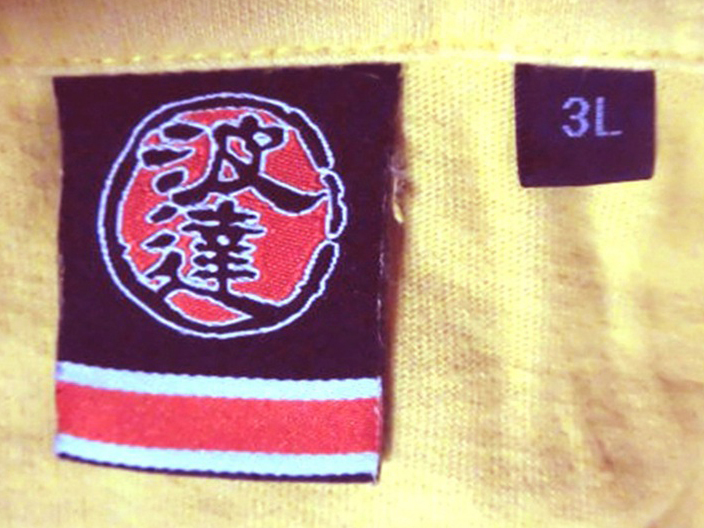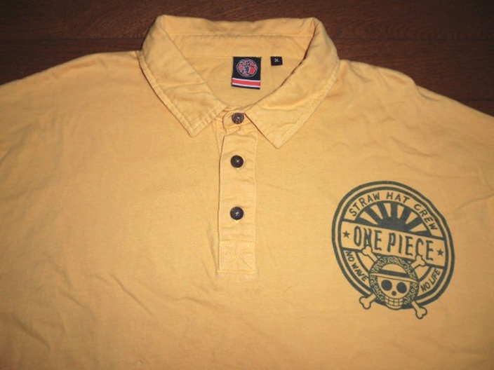 波達 波乗達人 ワンピース コラボ 波乗海賊 サーフシャツ 半袖 コットン 和柄 ポロシャツ YEL-ORG 大きいサイズ 3L USED 美品/サーフィン