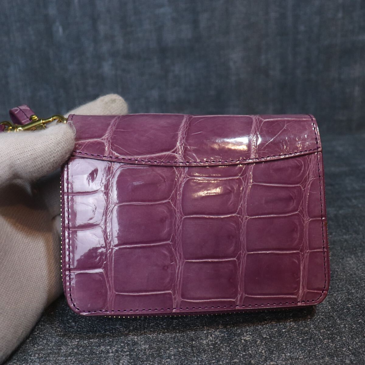 新品 1円スタート クロコダイル シャイニング ウォレット ピンクパープル genuine crocodile エキゾチックレザー 1スタ ワニ革