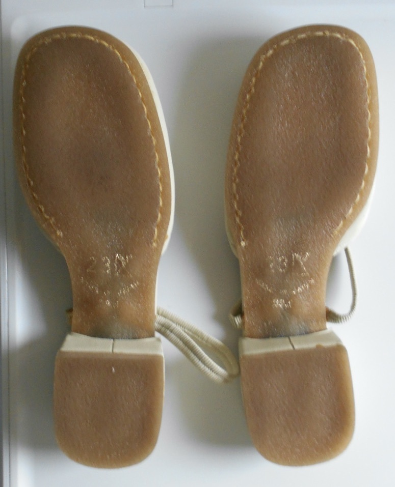 | ♪ご覧いただき有難うございます♪ ストラップ付きサンダル 23.5cm 高さ2cm ベージュ 牛革 日本製 同色のお花の刺繍が可愛いです。 使用1回。使用する機会がなくなったので出品します。 踵の減りは、気にならない程度かと思います。 長期保管中に、レーザーが茶色に変色している部分と接着剤が変色して茶色になった部分が見受けられます。全面、側面、ストラップに。履いていると目田ないかと思います。 牛革に小さなキズすれ等あります。 長期自宅保管。 ご了承ください。 |