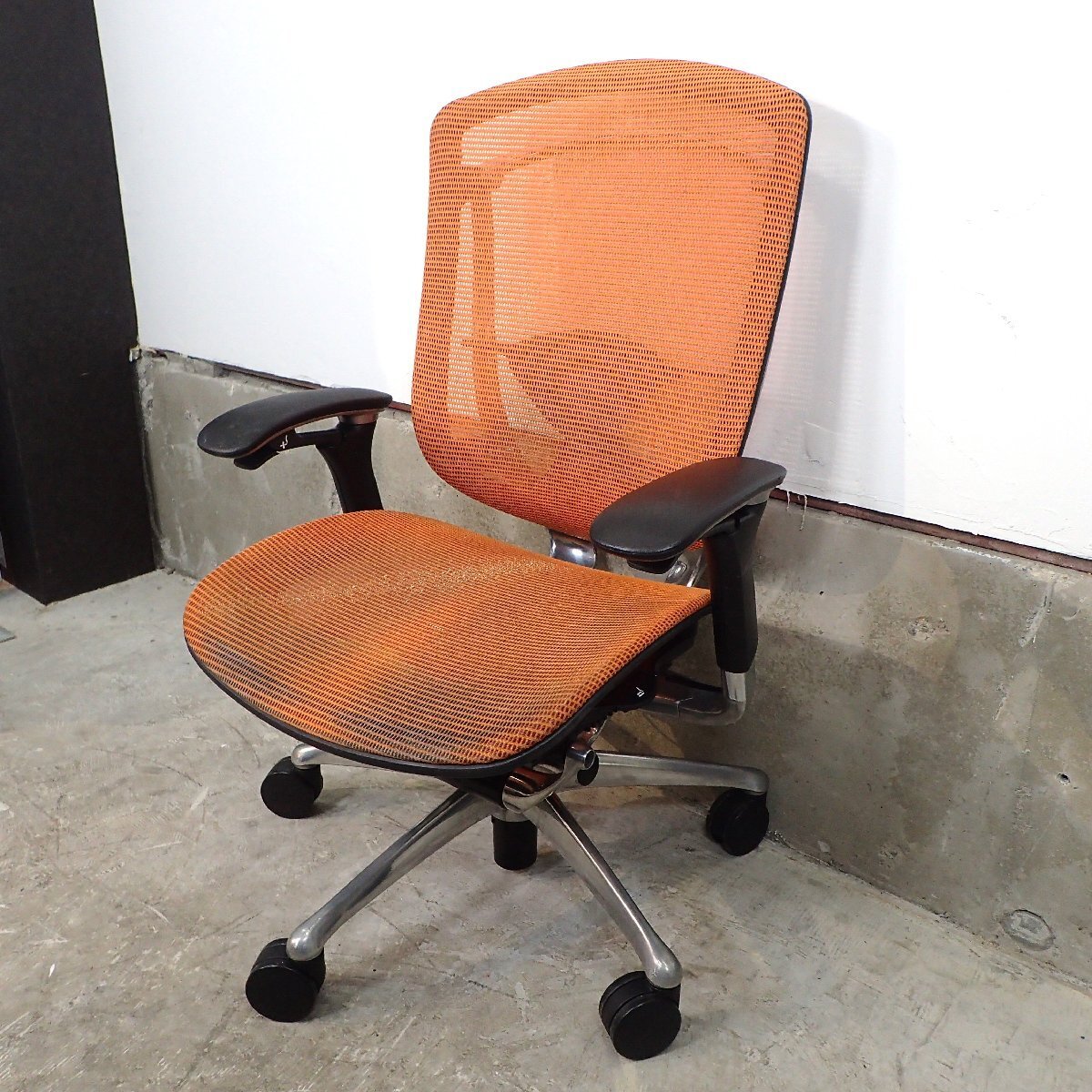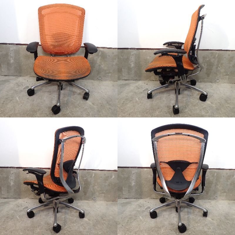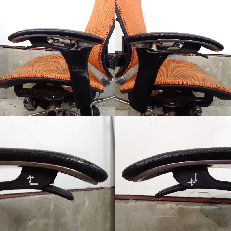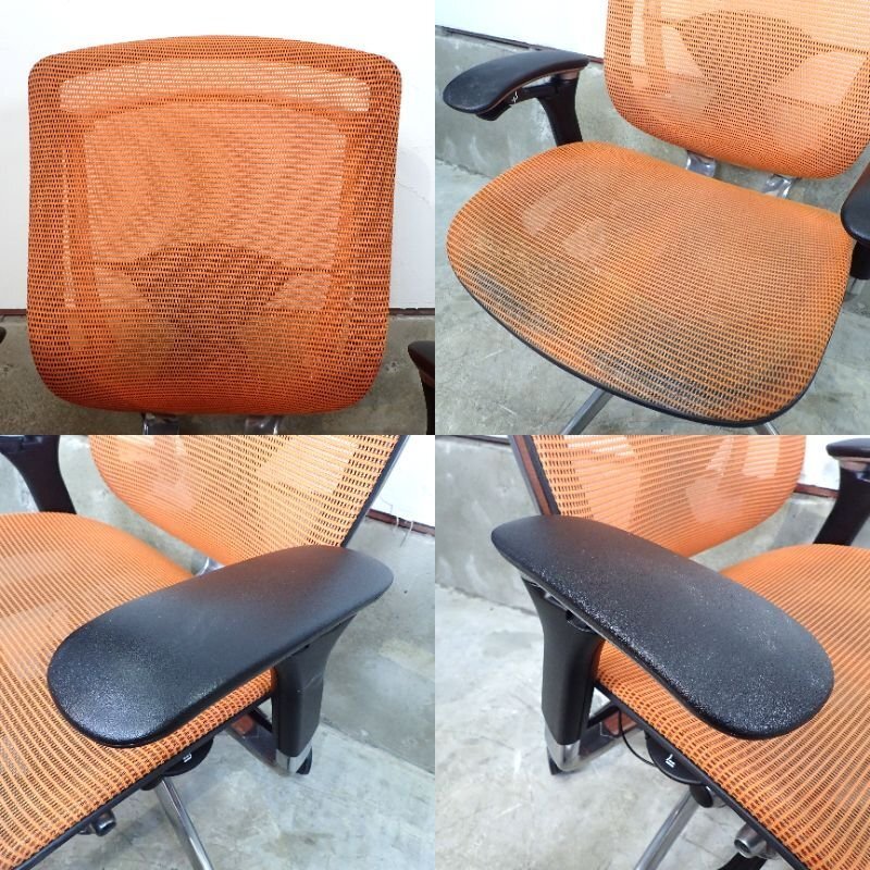商品説明 | オカムラ コンテッサシリーズの肘付きオフィスチェアが入荷いたしました。お色味はオレンジです。 オカムラが世界的大ヒット商品のアーロンチェアに対抗すべく生みだしたとされるコンテッサチェア。 体勢を変えずにリクライニングや高さ調節などの操作ができる「スマートオペレーション」を搭載。 国内最高峰の品質とデザイン、機能性を兼ね備えた高級チェアです。 ※こちらは中古品となります。使用による小傷やスレがございます。 また座面にヘタレが見られ、座面昇降機能はガス圧低下により下げる際にガクッと落ちます。 その他の機能に関しましては問題ございません。あらかじめご了承ください。 |