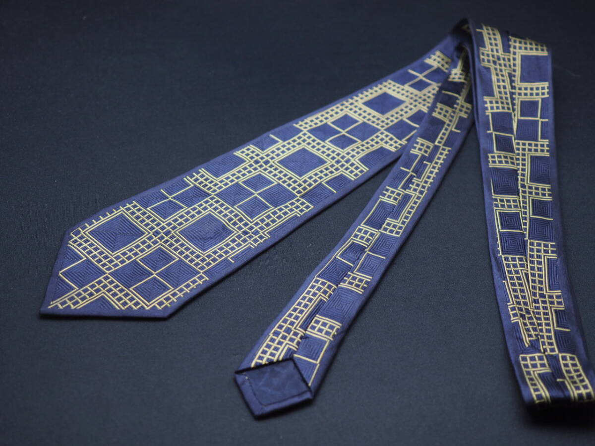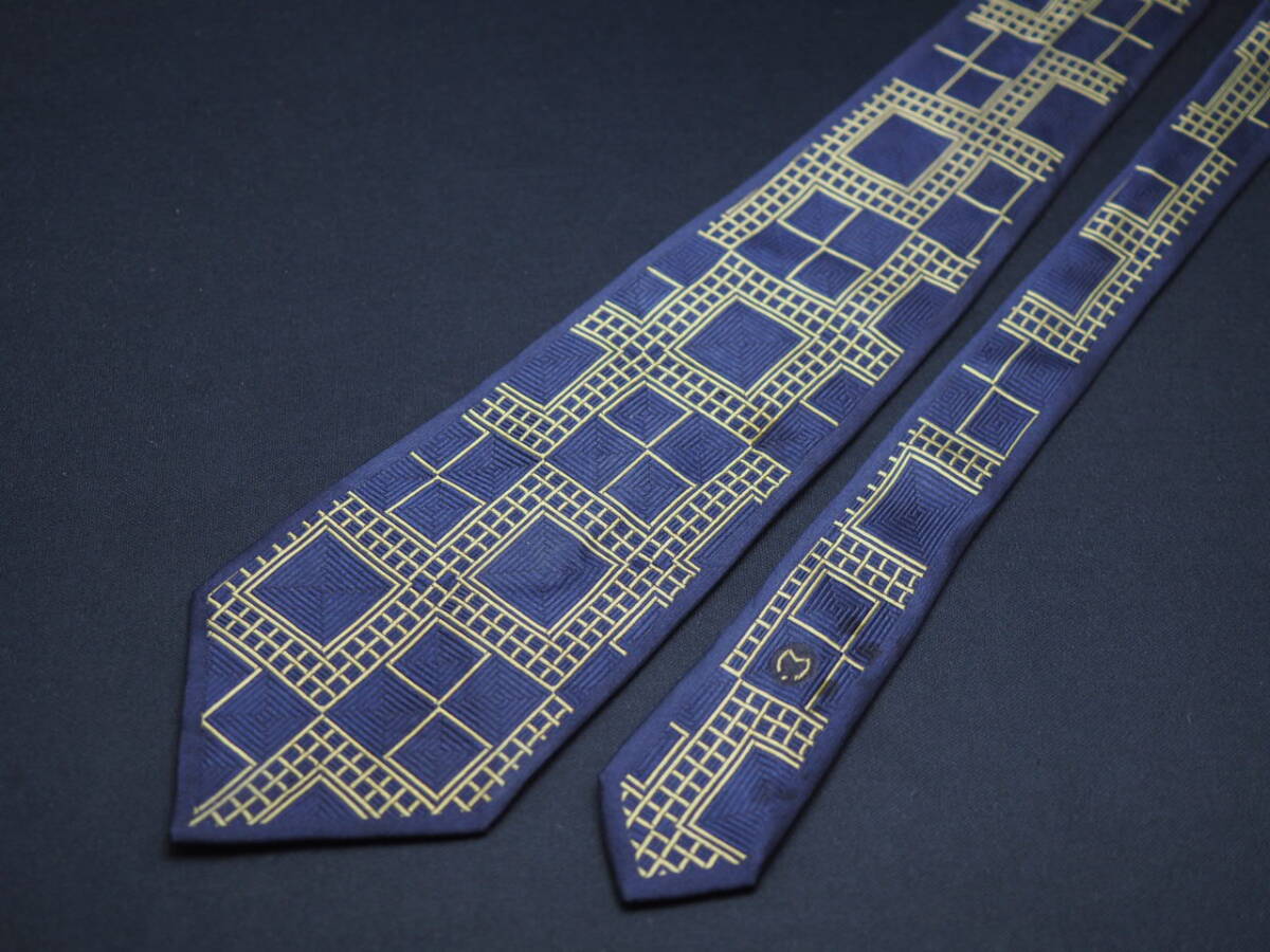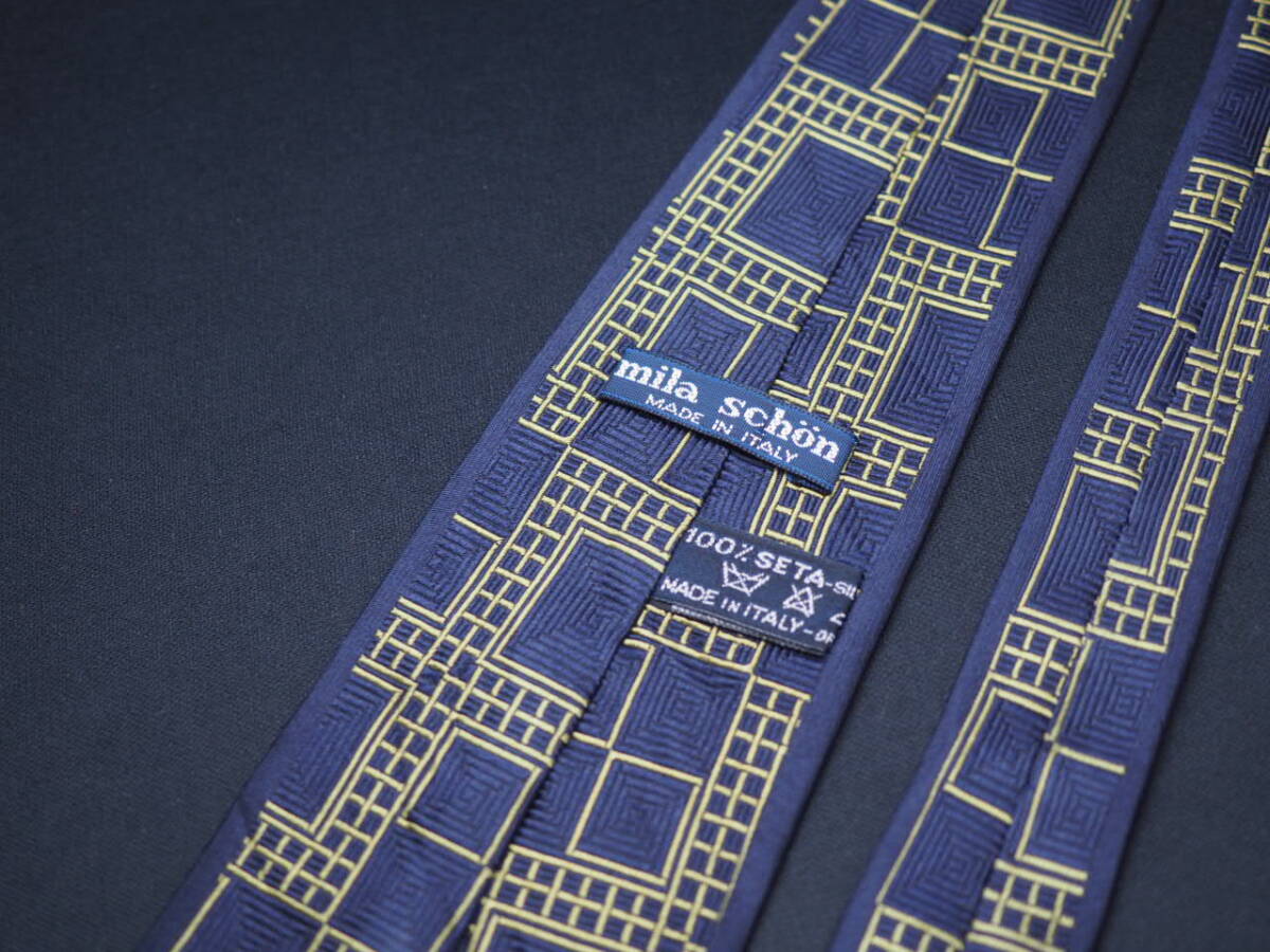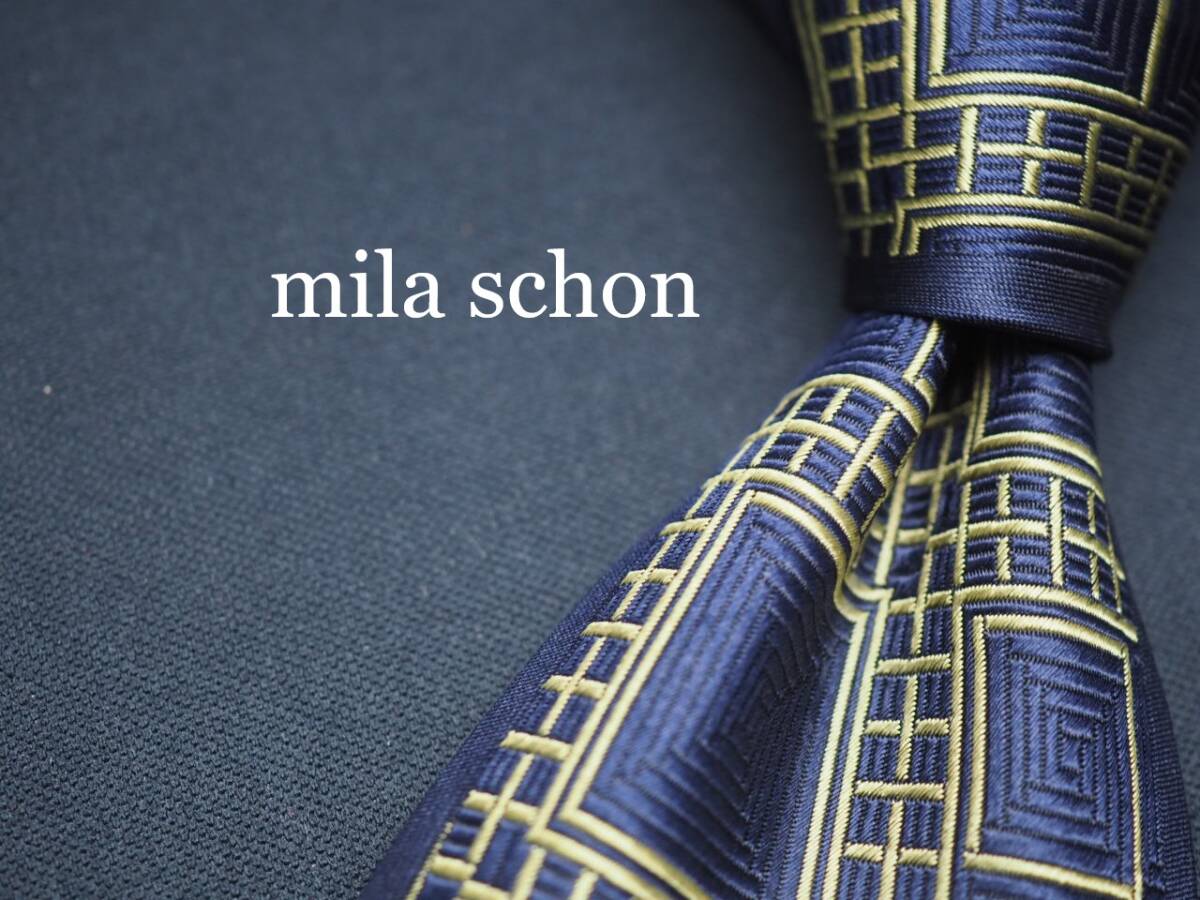 美品【Mila Schon ミラショーン】 F1393 ネイビー系 SILK ブランド ネクタイ 古着 良品