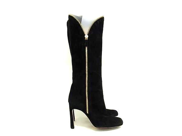GIORGIO ARMANI ジョルジオアルマーニ スエード ヒール ロングブーツ 表記サイズ35 (約22cm) 靴 シューズ ブラック系 DG2305