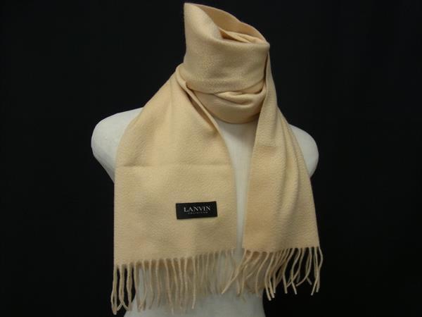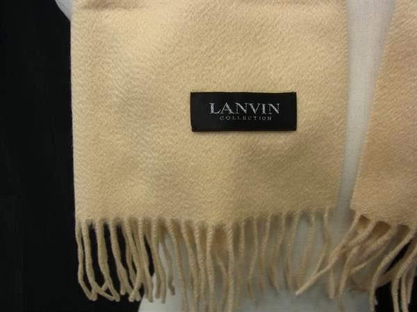 ■美品■ LANVIN ランバン フリンジ マフラー ストール ショール 防寒具 レディース メンズ ベージュ系 DH0872
