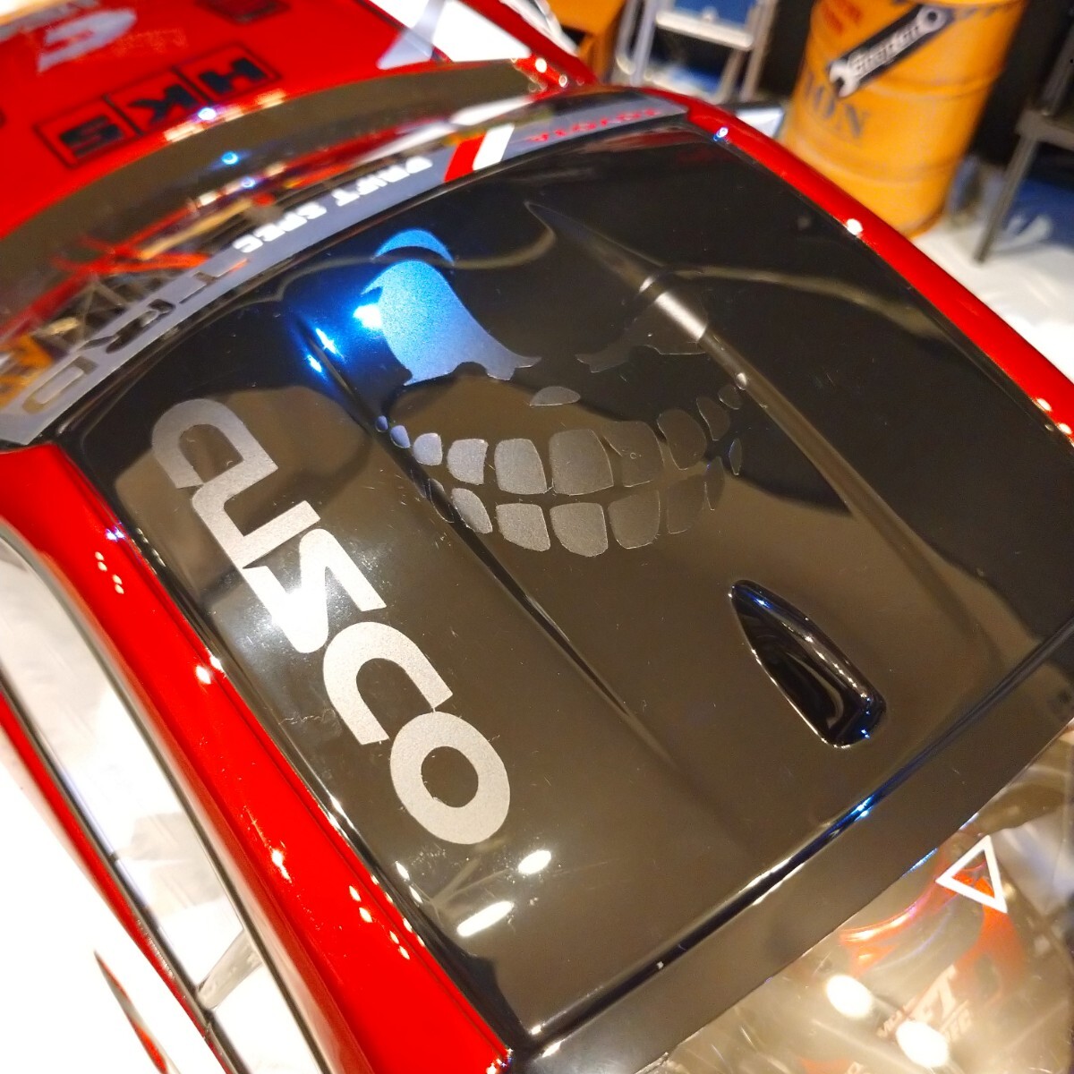 ※ハチマキもボンネットダクトも天井のスカルイラストもホワイト&ブラックライン模様も入ってます。
