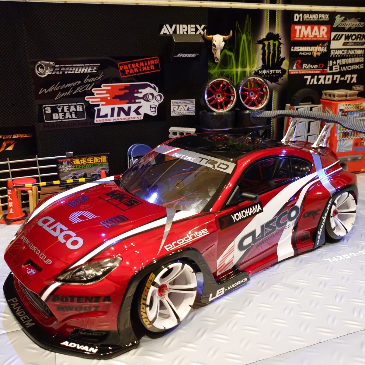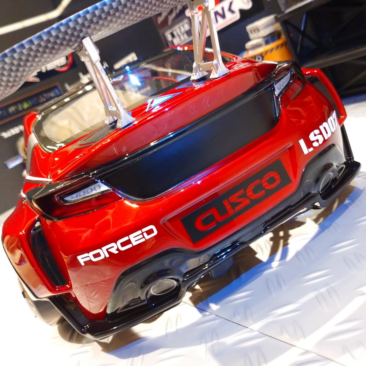 ■CUSCO Racing Fomula D仕様は通常、ホワイトボディにレッドライン&ブラックラインを入れるのが基本デザインですが、レッドラインとホワイトラインを入れ替えて、レッドボディにホワイト&ブラックラインを入れることで希少なCUSCO GR86レッドボディの完成です。