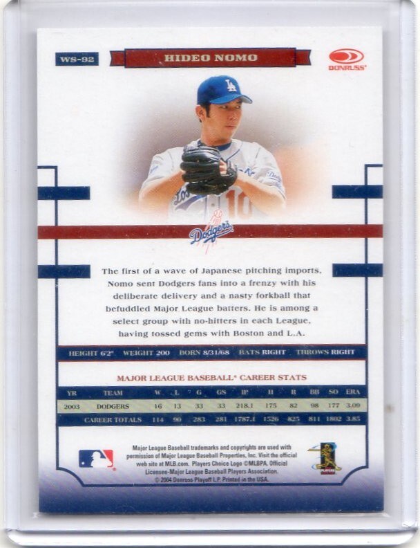 ★☆野茂英雄 カード Vol.1117 2004DONRUSS WORLD SERIES #WS-92☆★ | |