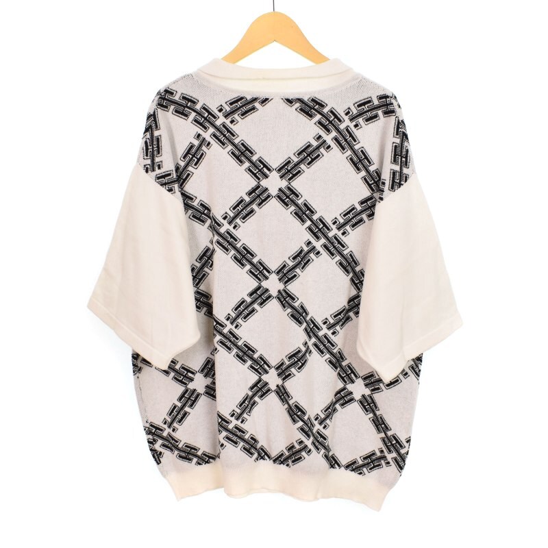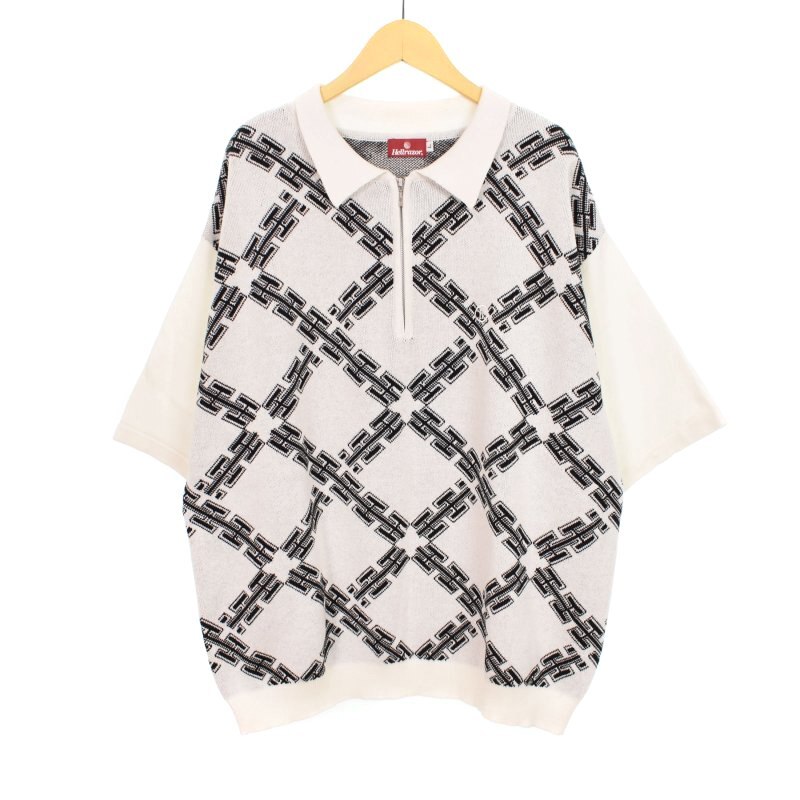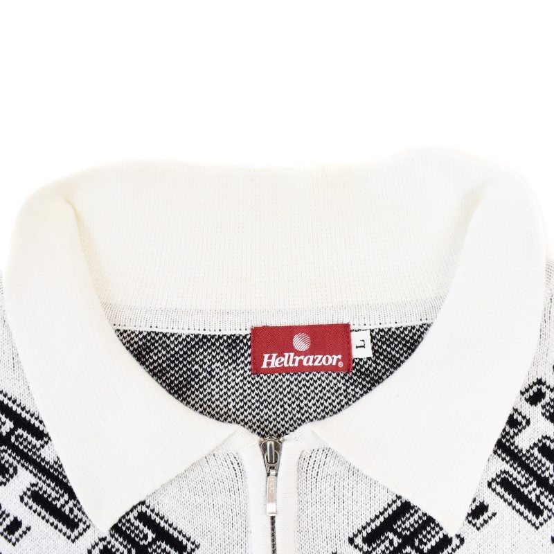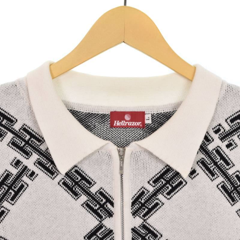 ヘルレイザー Hellrazor ニット ポロシャツ 半袖 ハーフジップ L 白 ホワイト メンズ