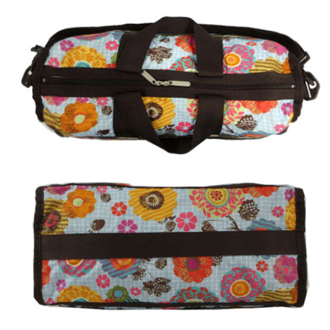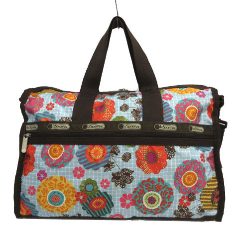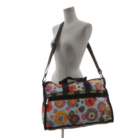 レスポートサック LesportSAC ボストンバッグ ショルダー ポーチ付き ナイロンキャンバス 総柄 ブルー系 青系 マルチカラー